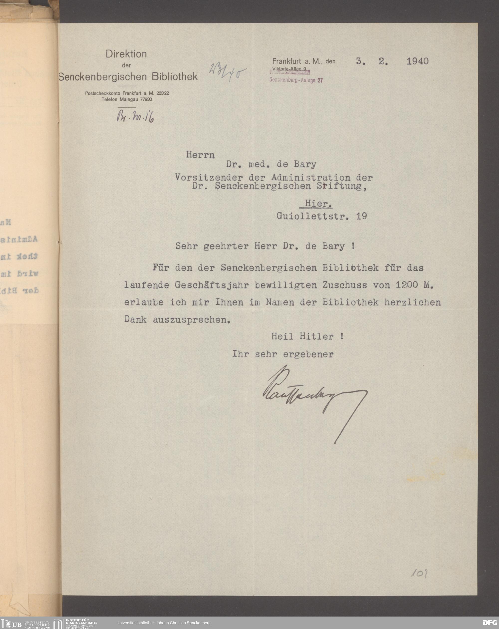 V48 Dr. Senckenbergische Stiftung, 640 - Personalangelegenheiten der Bibliothek
