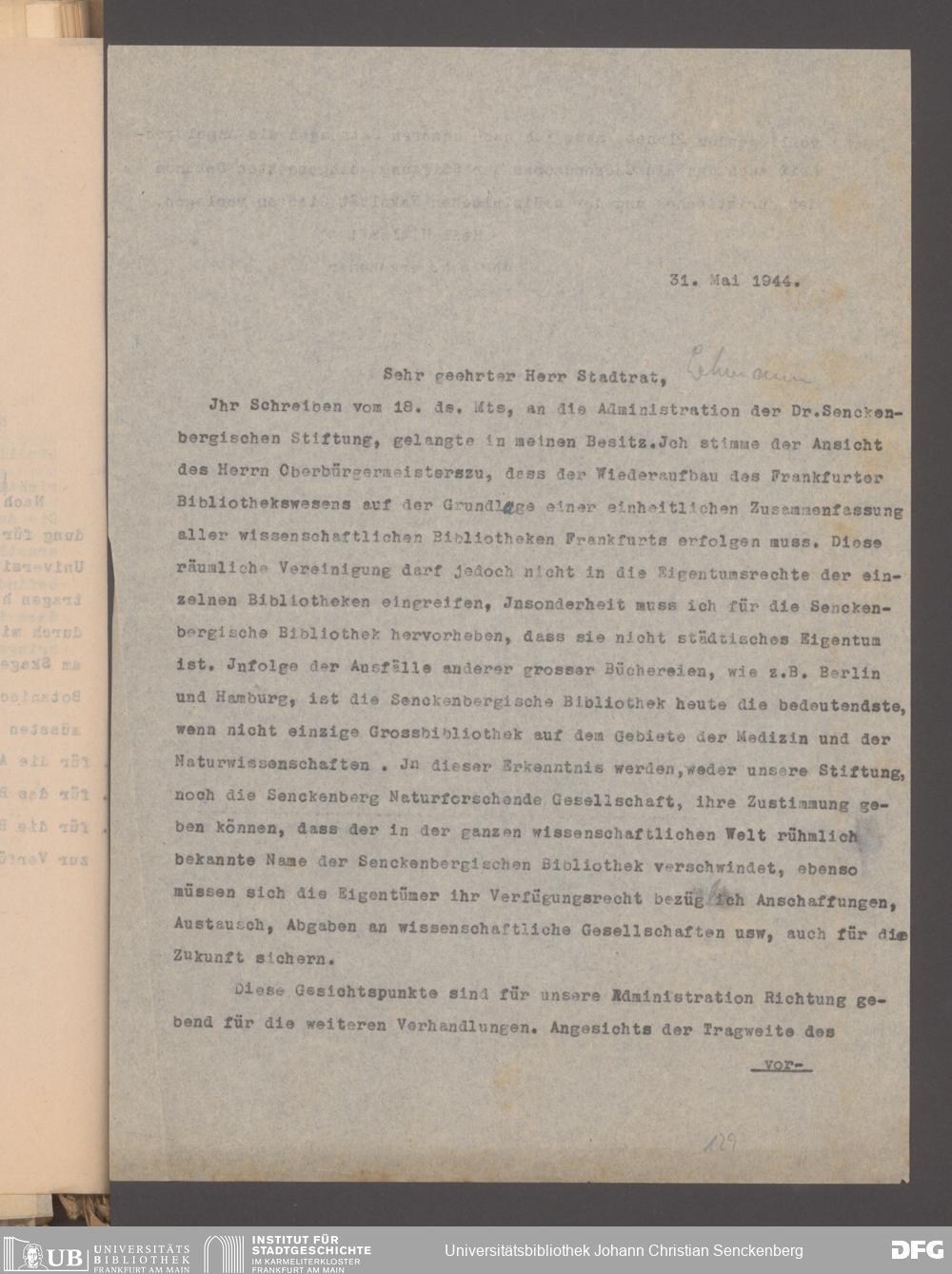 V48 Dr. Senckenbergische Stiftung, 640 - Personalangelegenheiten der Bibliothek