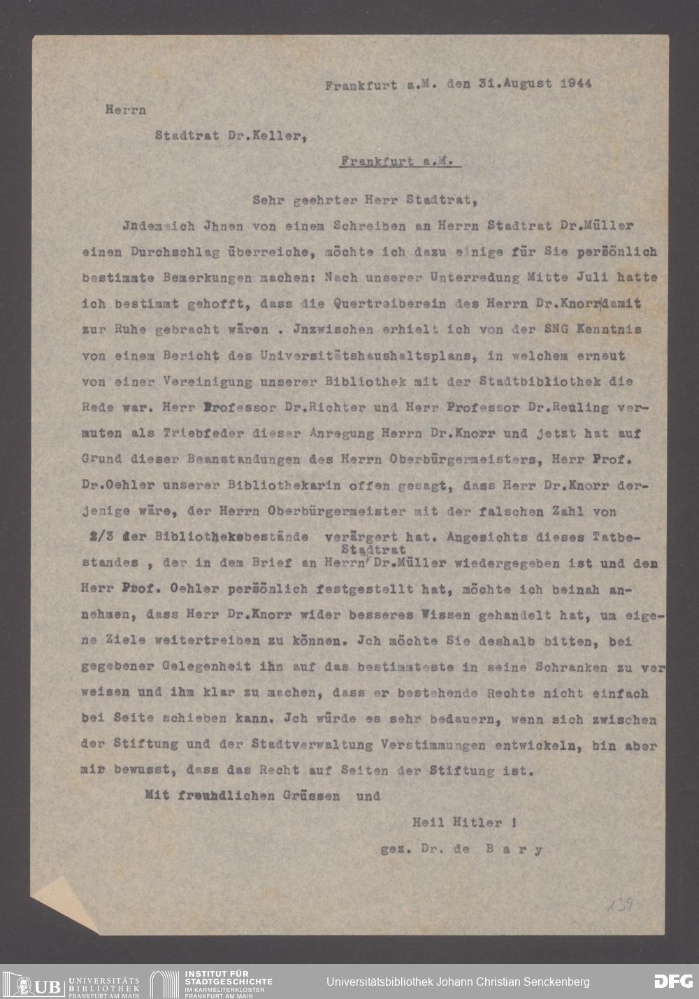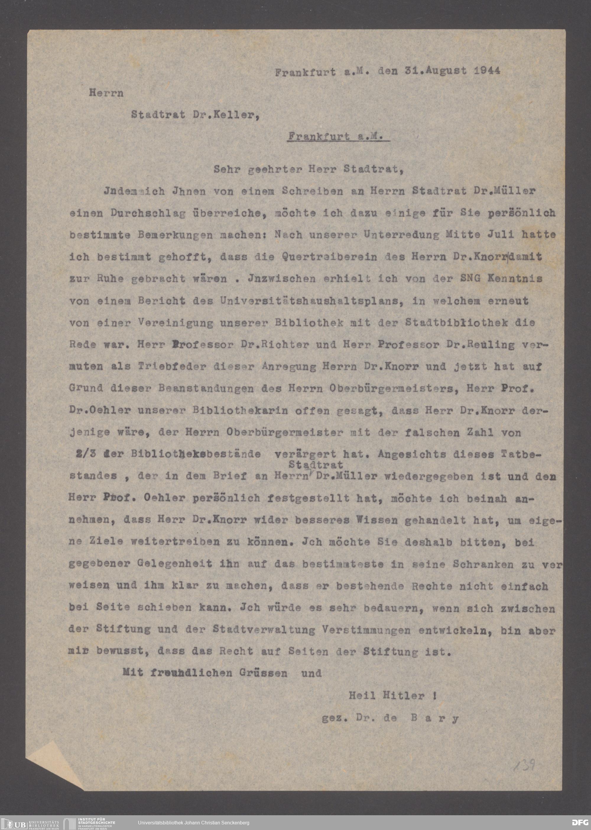 V48 Dr. Senckenbergische Stiftung, 640 - Personalangelegenheiten der Bibliothek