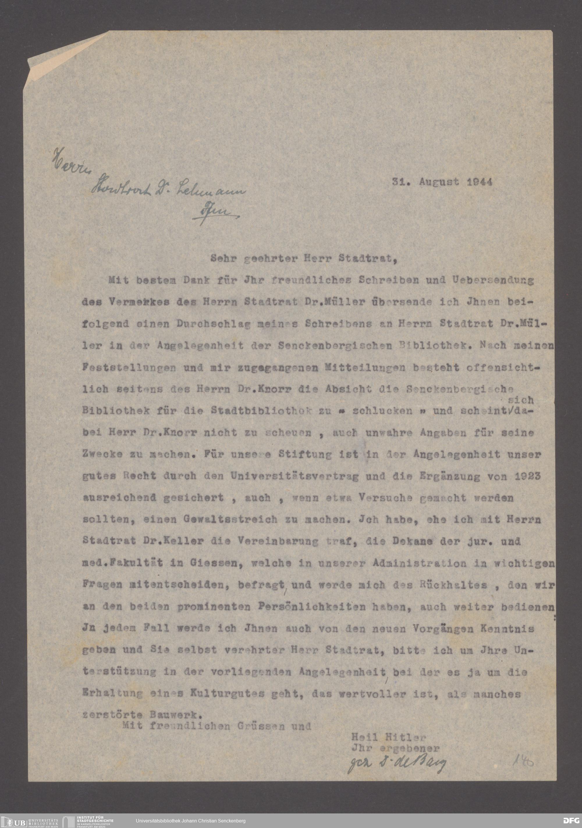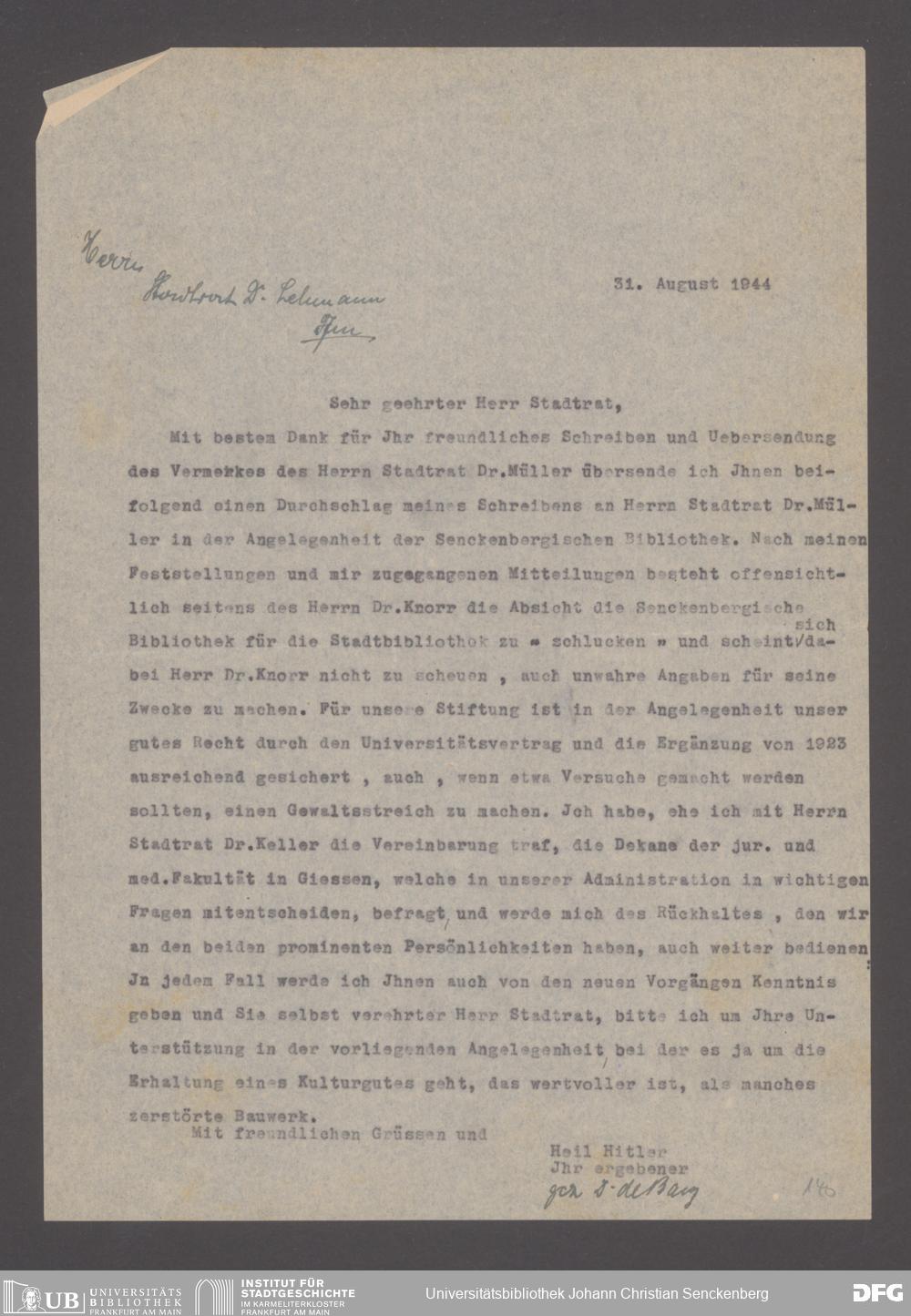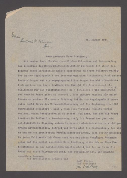V48 Dr. Senckenbergische Stiftung, 640 - Personalangelegenheiten der Bibliothek
