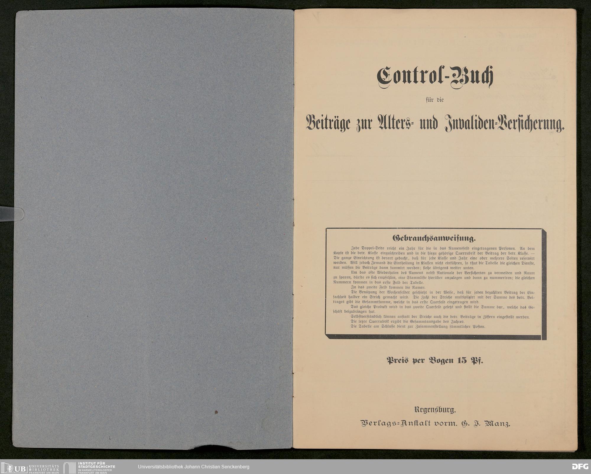 V48 Dr. Senckenbergische Stiftung, 641 - Kontrollbuch für die Beiträge der Mitarbeiter des Bürgerhospitals zur Alters- und Invalidenversicherung