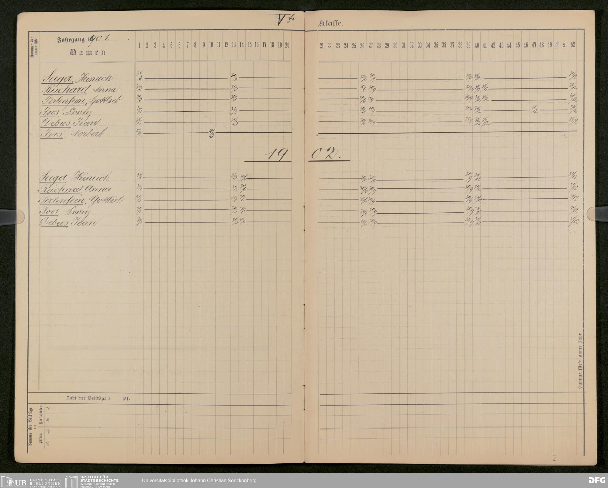 V48 Dr. Senckenbergische Stiftung, 641 - Kontrollbuch für die Beiträge der Mitarbeiter des Bürgerhospitals zur Alters- und Invalidenversicherung