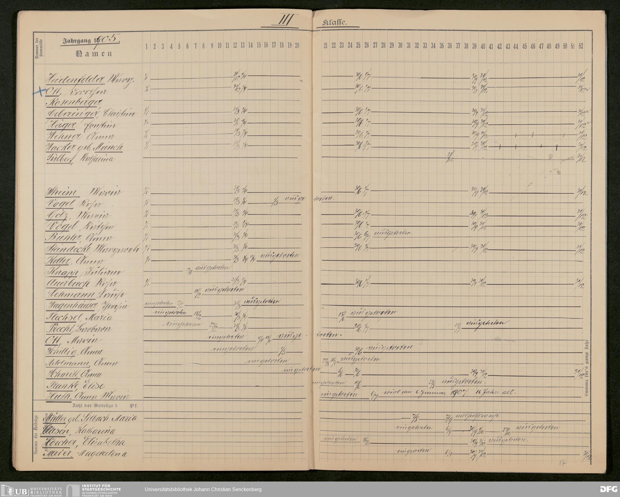 V48 Dr. Senckenbergische Stiftung, 641 - Kontrollbuch für die Beiträge der Mitarbeiter des Bürgerhospitals zur Alters- und Invalidenversicherung