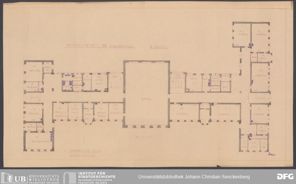 V48 Dr. Senckenbergische Stiftung, 643 - ... Fotografien und Grundrisse der Reservelazarette, Bd. 1