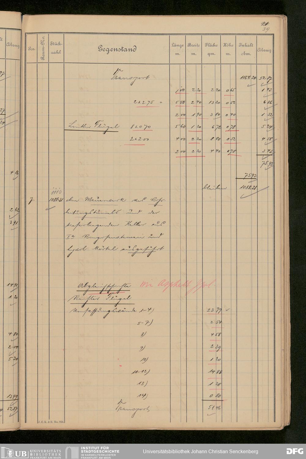 V48 Dr. Senckenbergische Stiftung, 646 - ... Massenabrechnung für den Neubau, Bd. 1