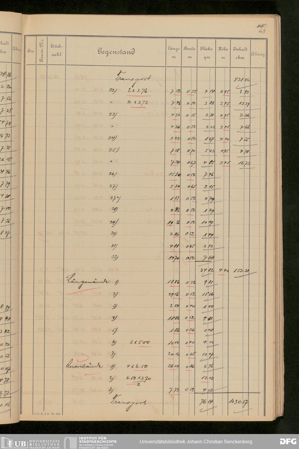 V48 Dr. Senckenbergische Stiftung, 646 - ... Massenabrechnung für den Neubau, Bd. 1
