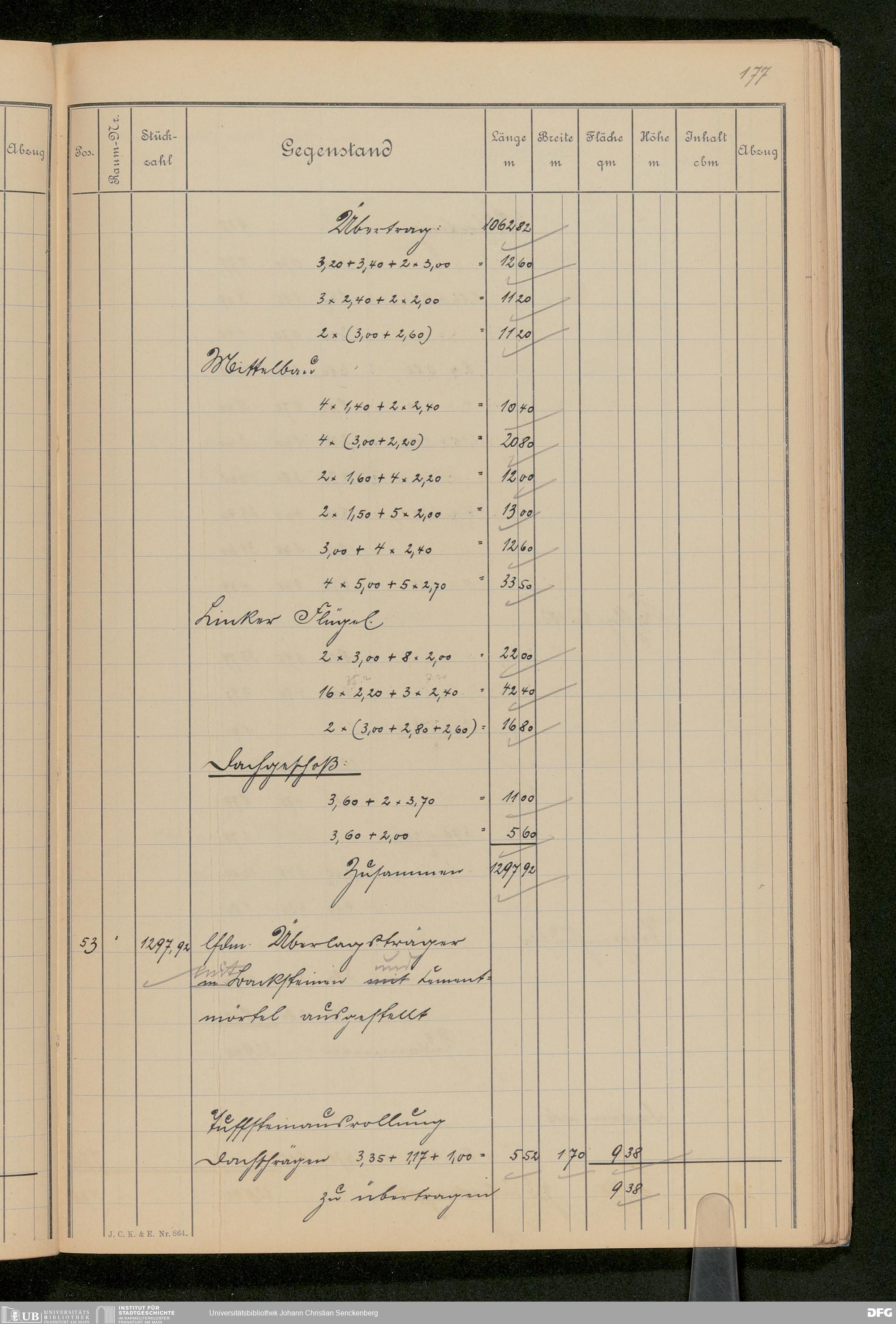 V48 Dr. Senckenbergische Stiftung, 646 - ... Massenabrechnung für den Neubau, Bd. 1