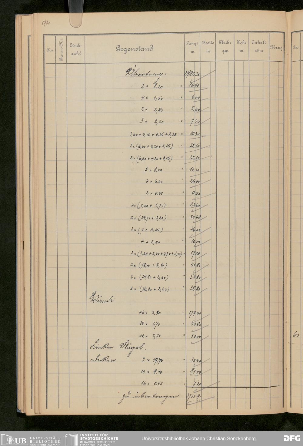 V48 Dr. Senckenbergische Stiftung, 646 - ... Massenabrechnung für den Neubau, Bd. 1
