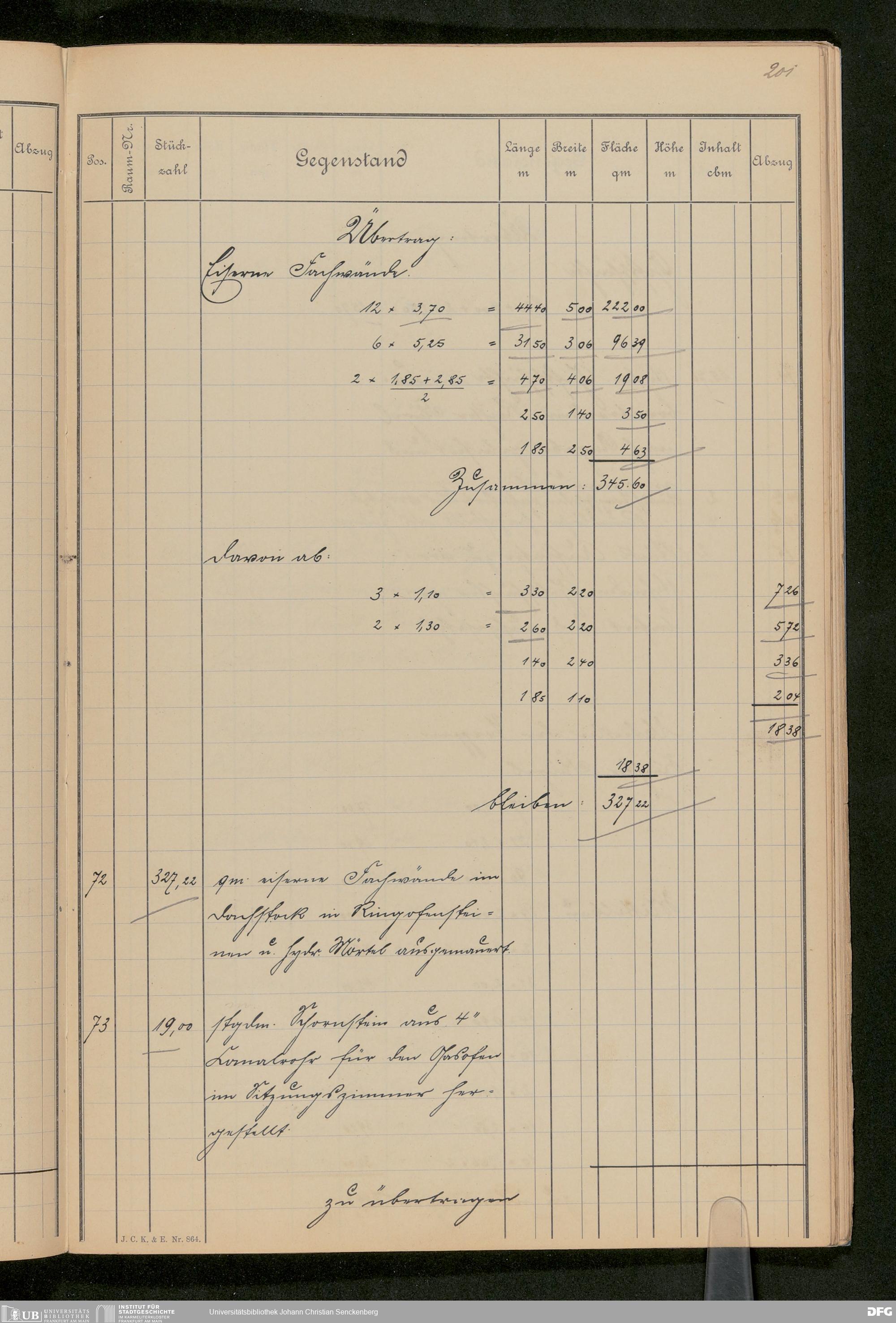 V48 Dr. Senckenbergische Stiftung, 646 - ... Massenabrechnung für den Neubau, Bd. 1