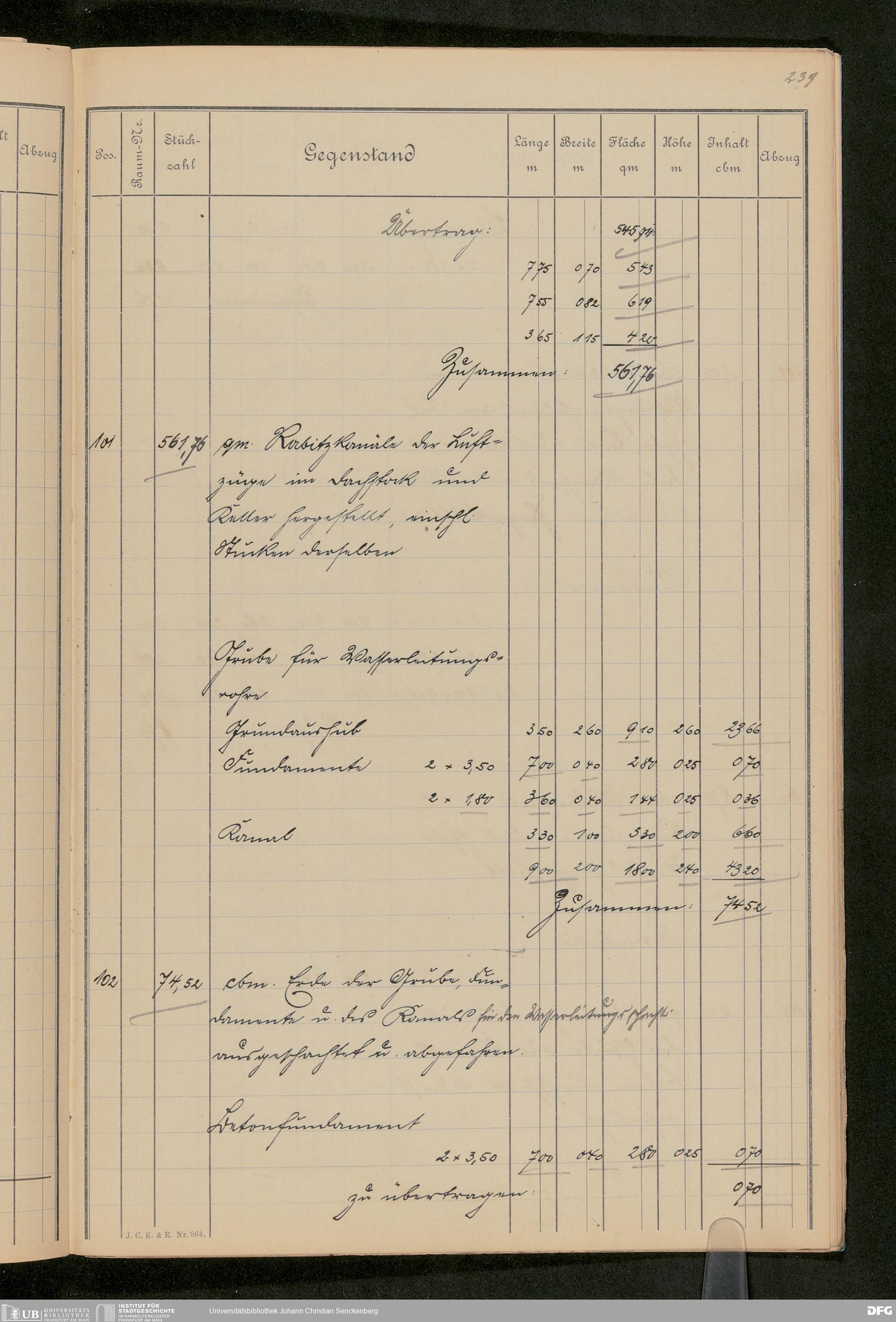 V48 Dr. Senckenbergische Stiftung, 646 - ... Massenabrechnung für den Neubau, Bd. 1