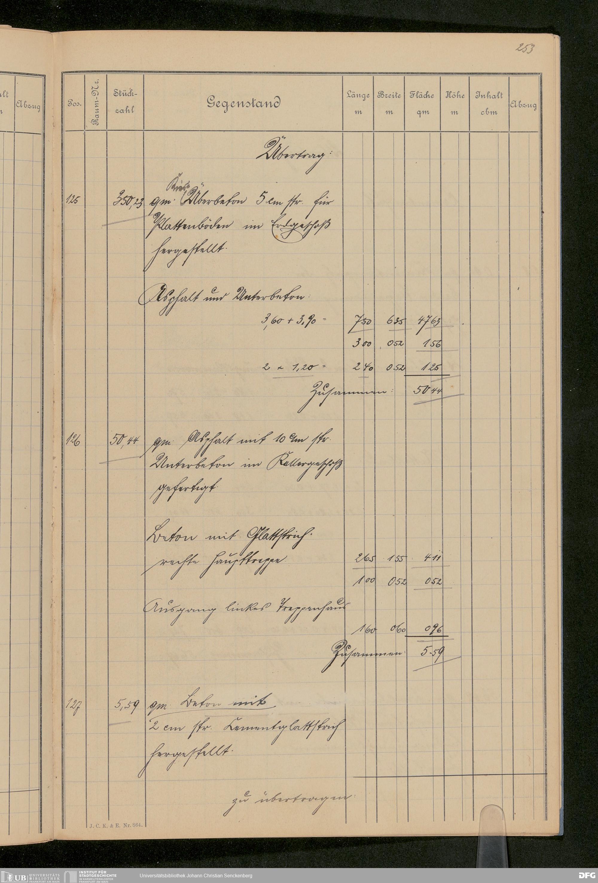 V48 Dr. Senckenbergische Stiftung, 646 - ... Massenabrechnung für den Neubau, Bd. 1