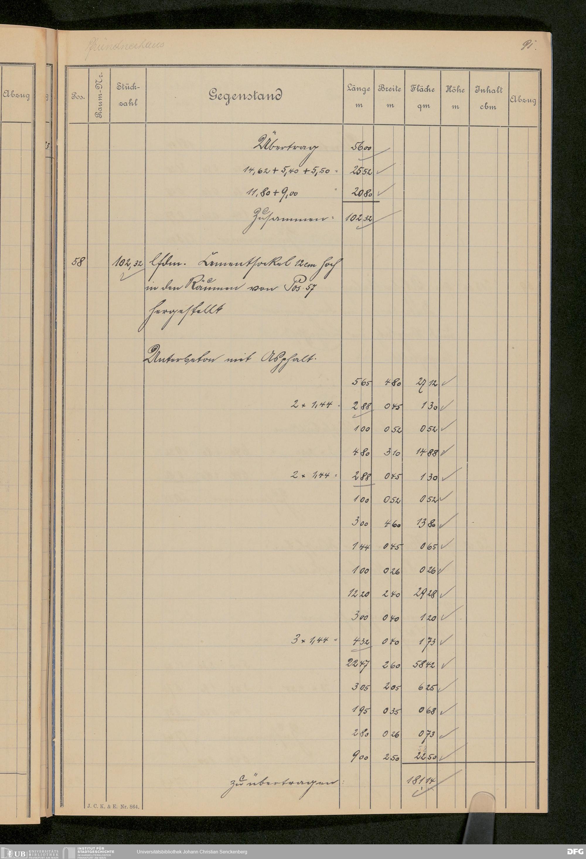V48 Dr. Senckenbergische Stiftung, 647 - ... Massenabrechnung für den Neubau, Bd. 2
