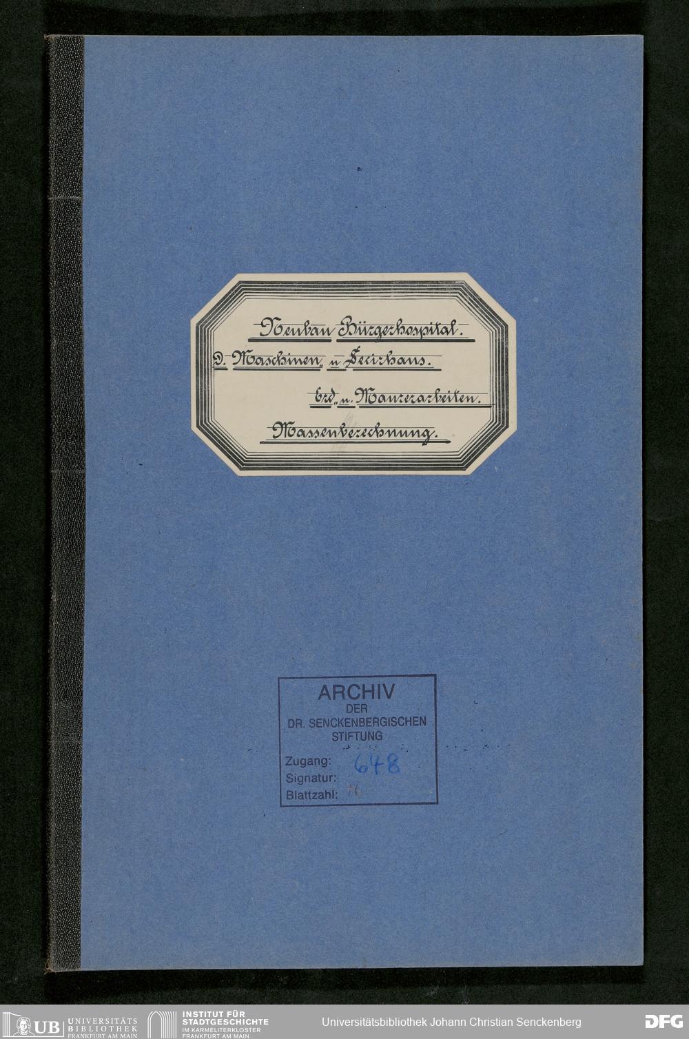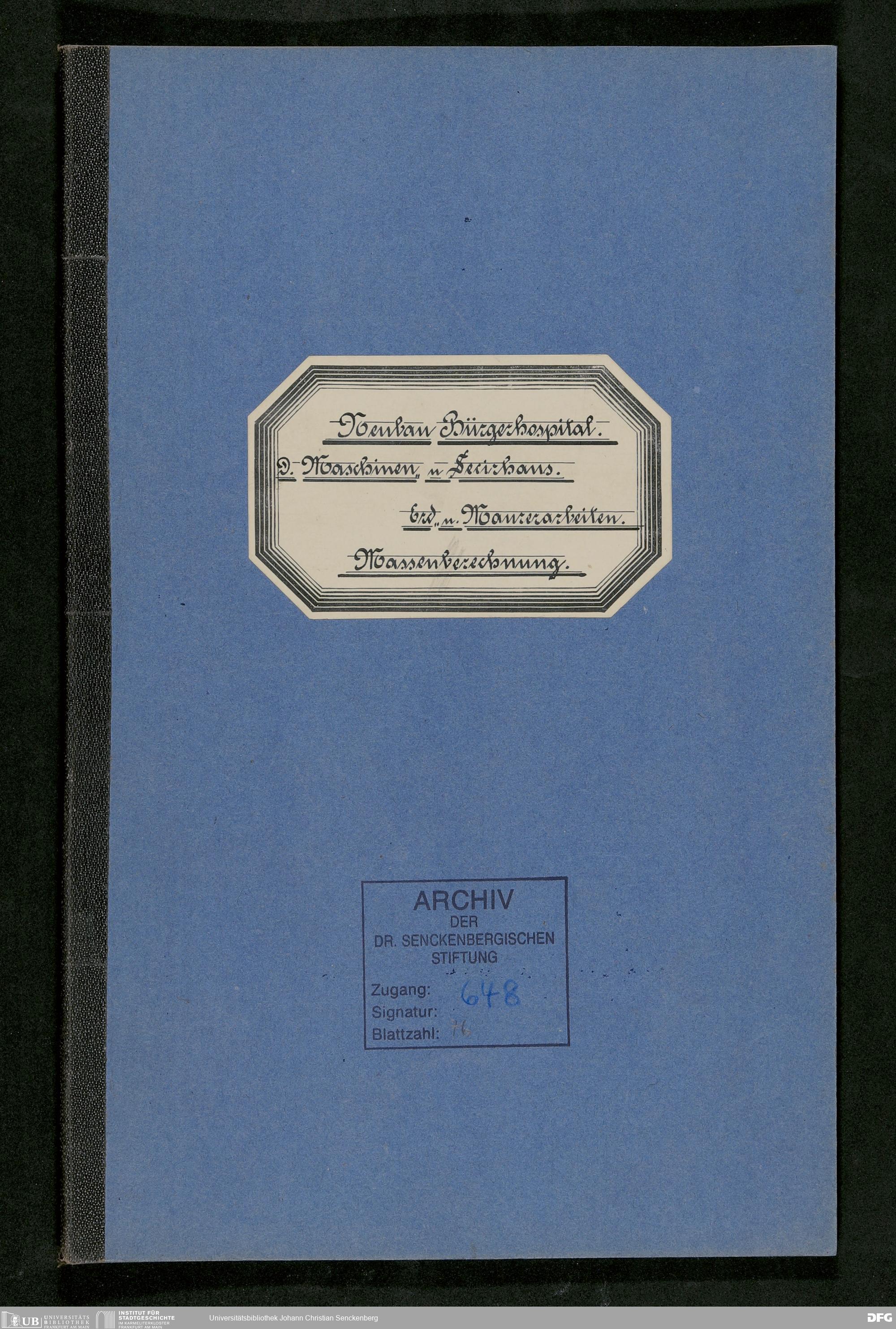 V48 Dr. Senckenbergische Stiftung, 648 - ... Massenabrechnung für den Neubau, Bd. 3