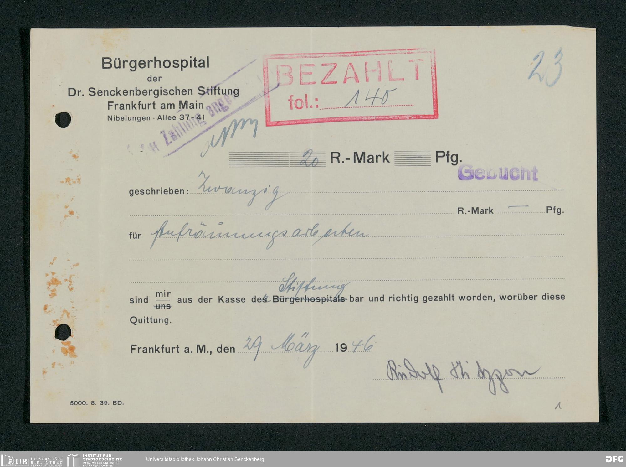 V48 Dr. Senckenbergische Stiftung, 659 - Kassenbelege