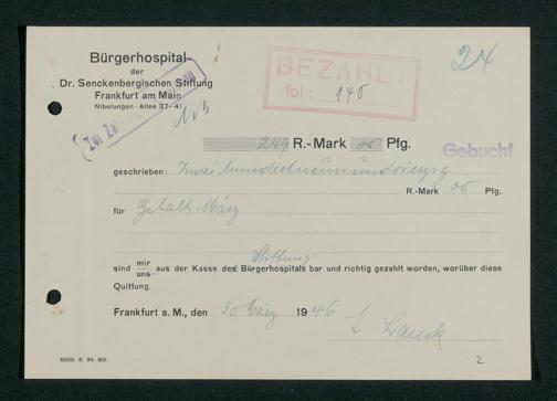 V48 Dr. Senckenbergische Stiftung, 659 - Kassenbelege