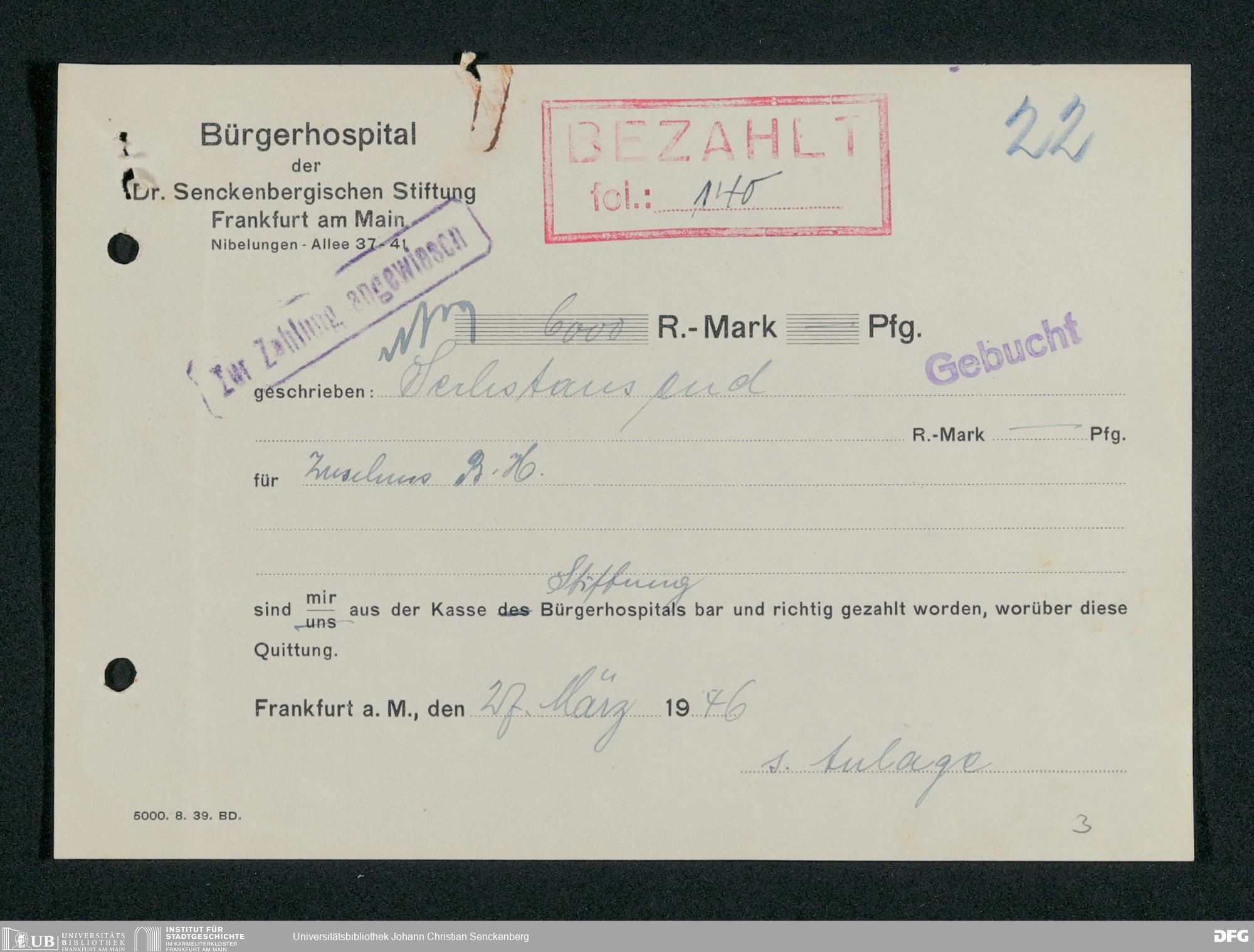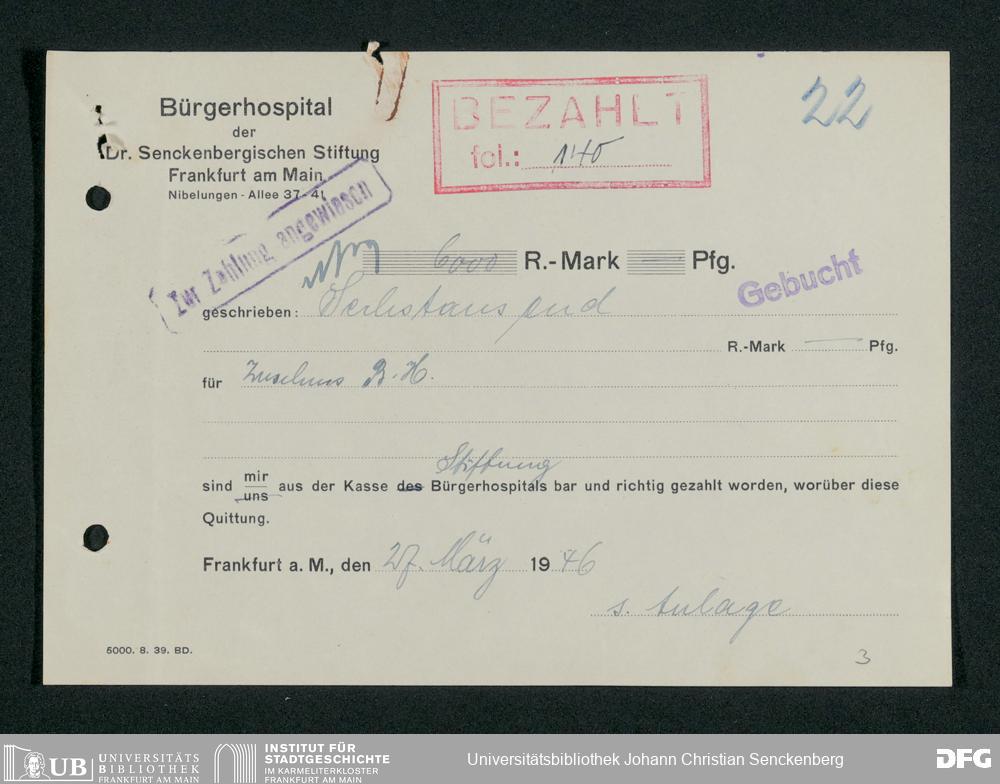 V48 Dr. Senckenbergische Stiftung, 659 - Kassenbelege