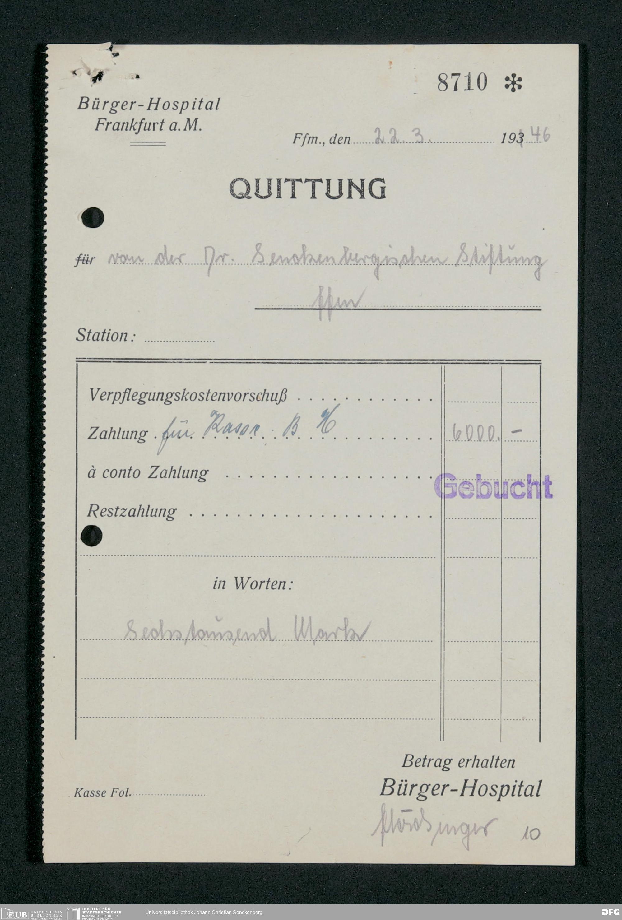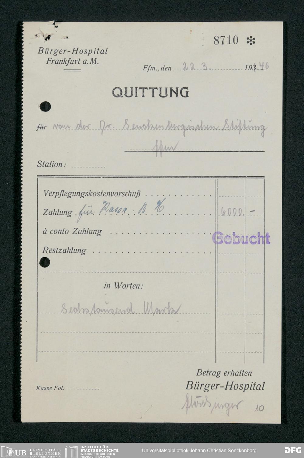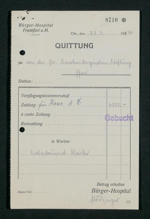 V48 Dr. Senckenbergische Stiftung, 659 - Kassenbelege