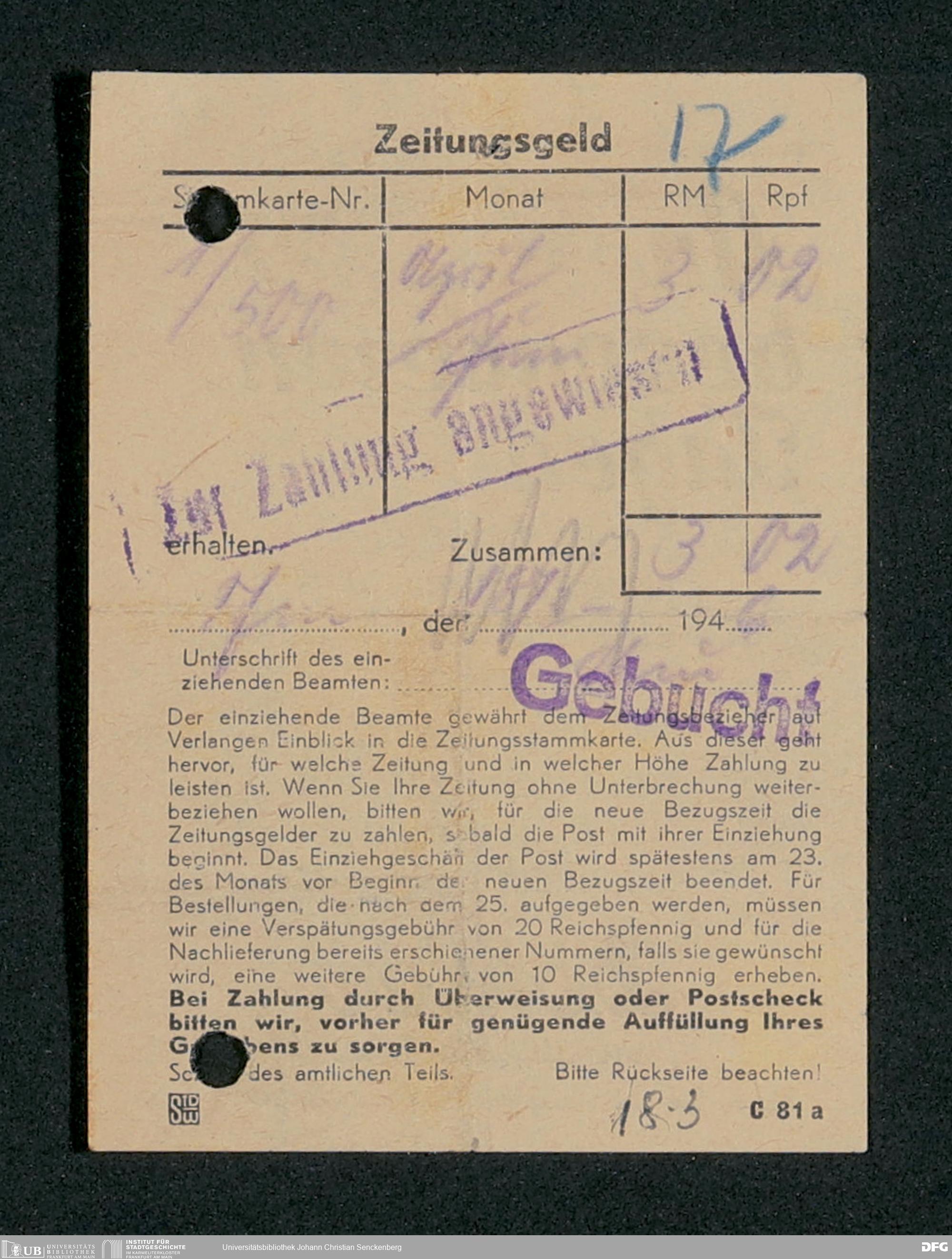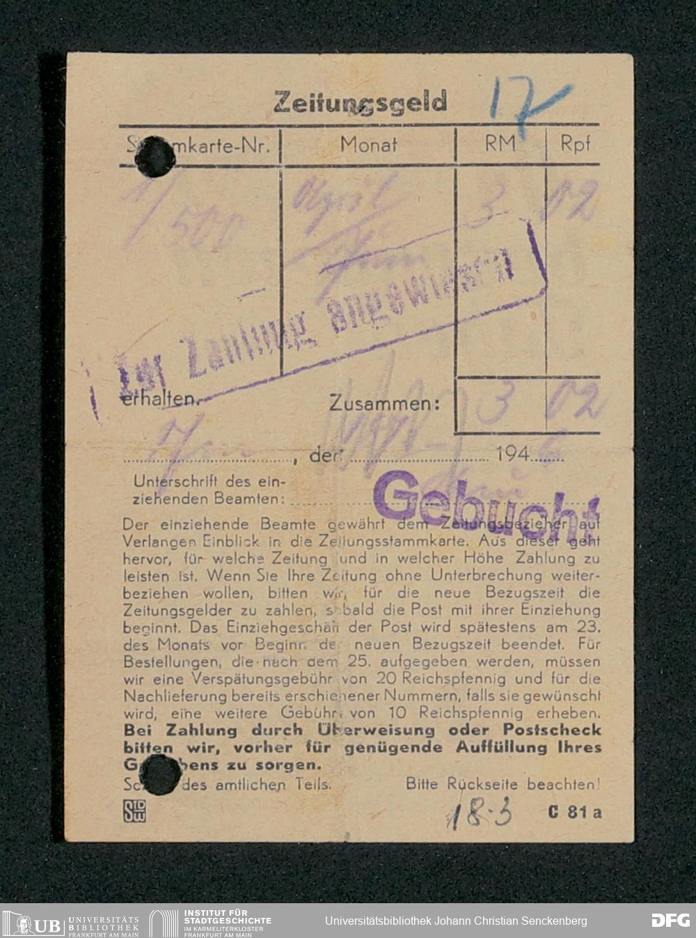 V48 Dr. Senckenbergische Stiftung, 659 - Kassenbelege