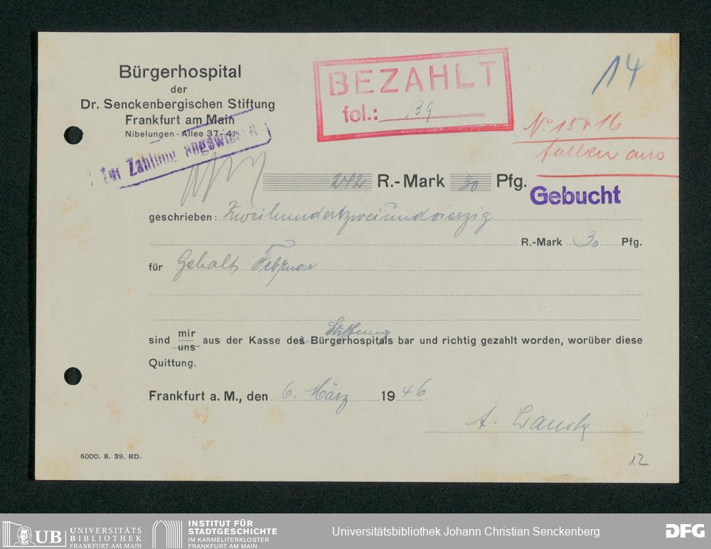 V48 Dr. Senckenbergische Stiftung, 659 - Kassenbelege