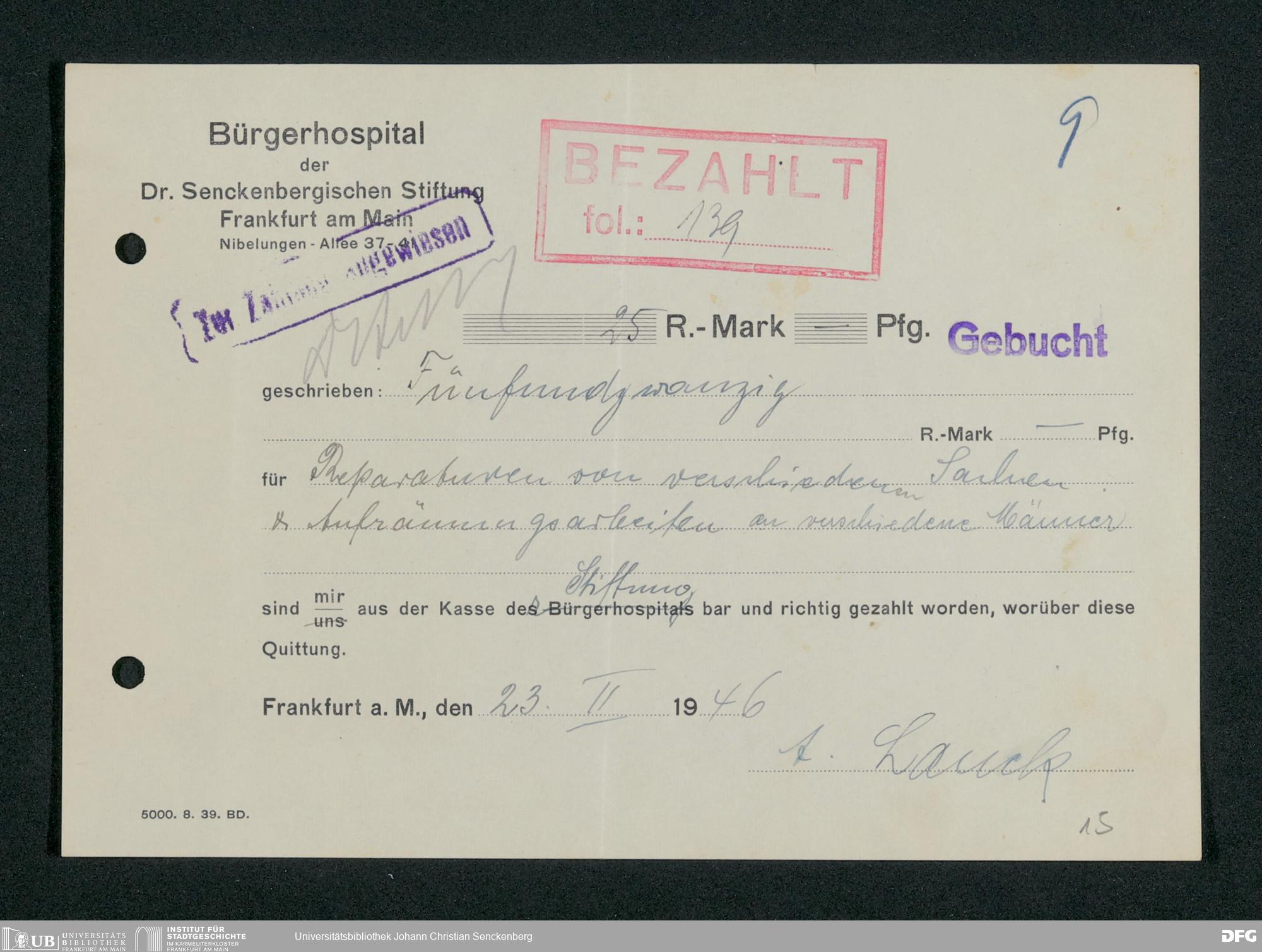 V48 Dr. Senckenbergische Stiftung, 659 - Kassenbelege