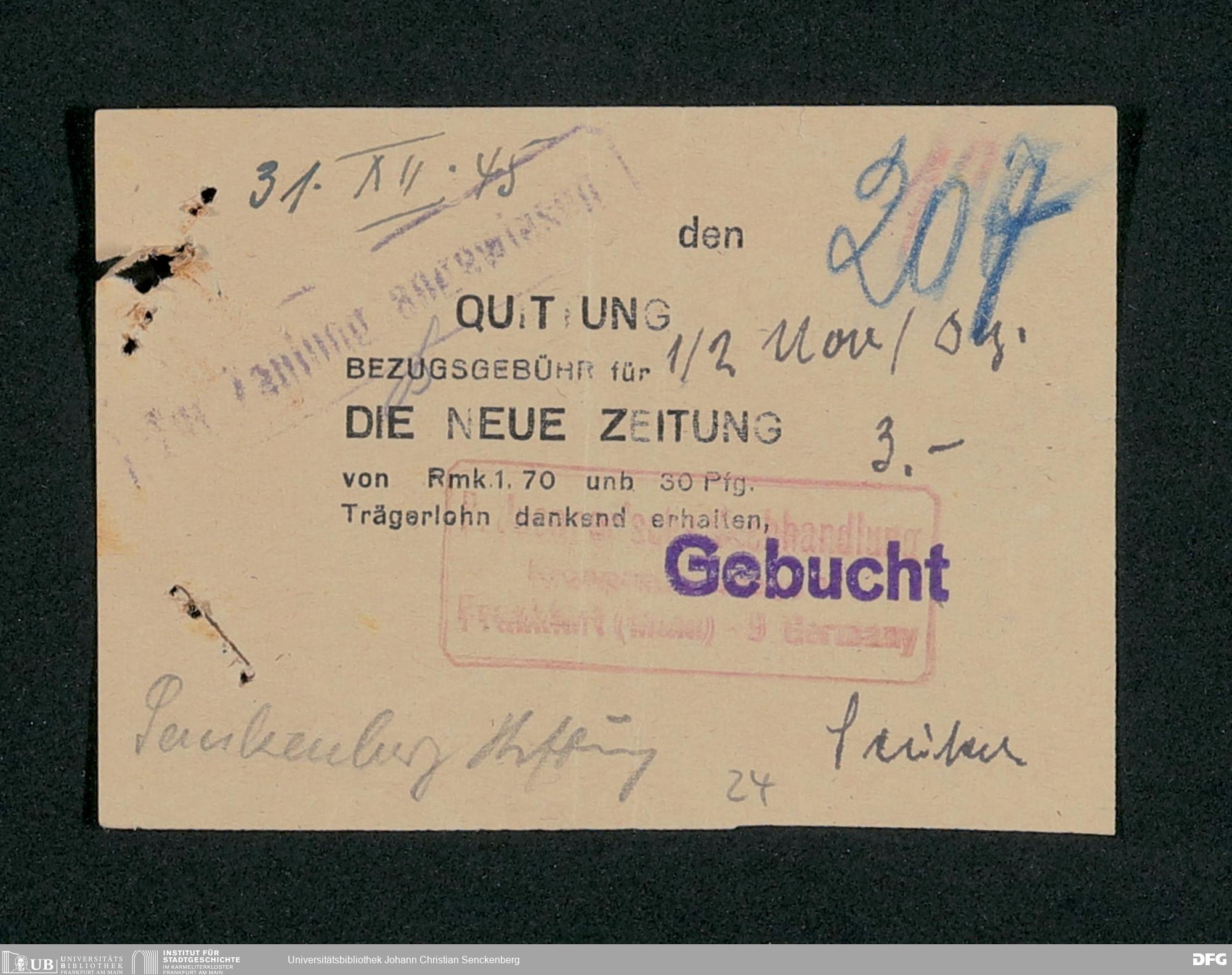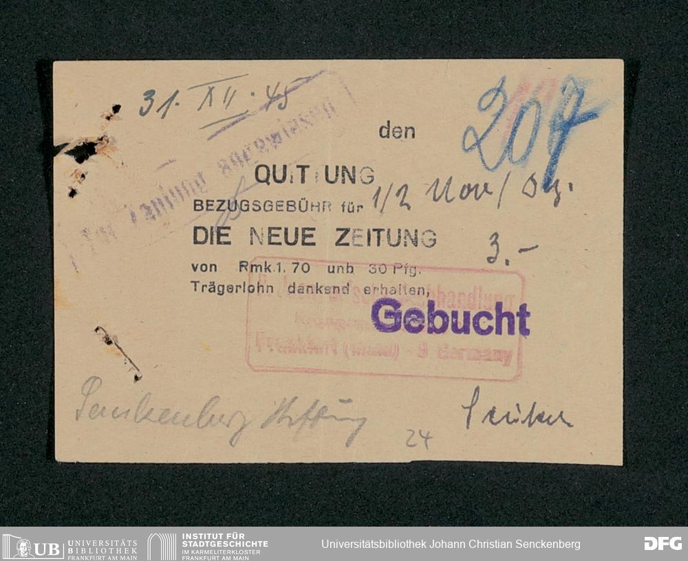 V48 Dr. Senckenbergische Stiftung, 659 - Kassenbelege