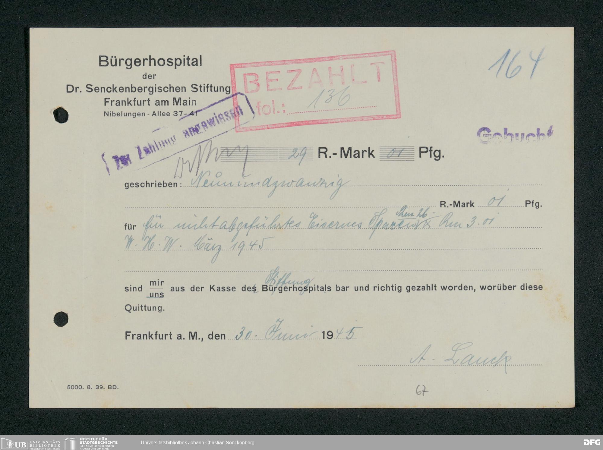 V48 Dr. Senckenbergische Stiftung, 659 - Kassenbelege
