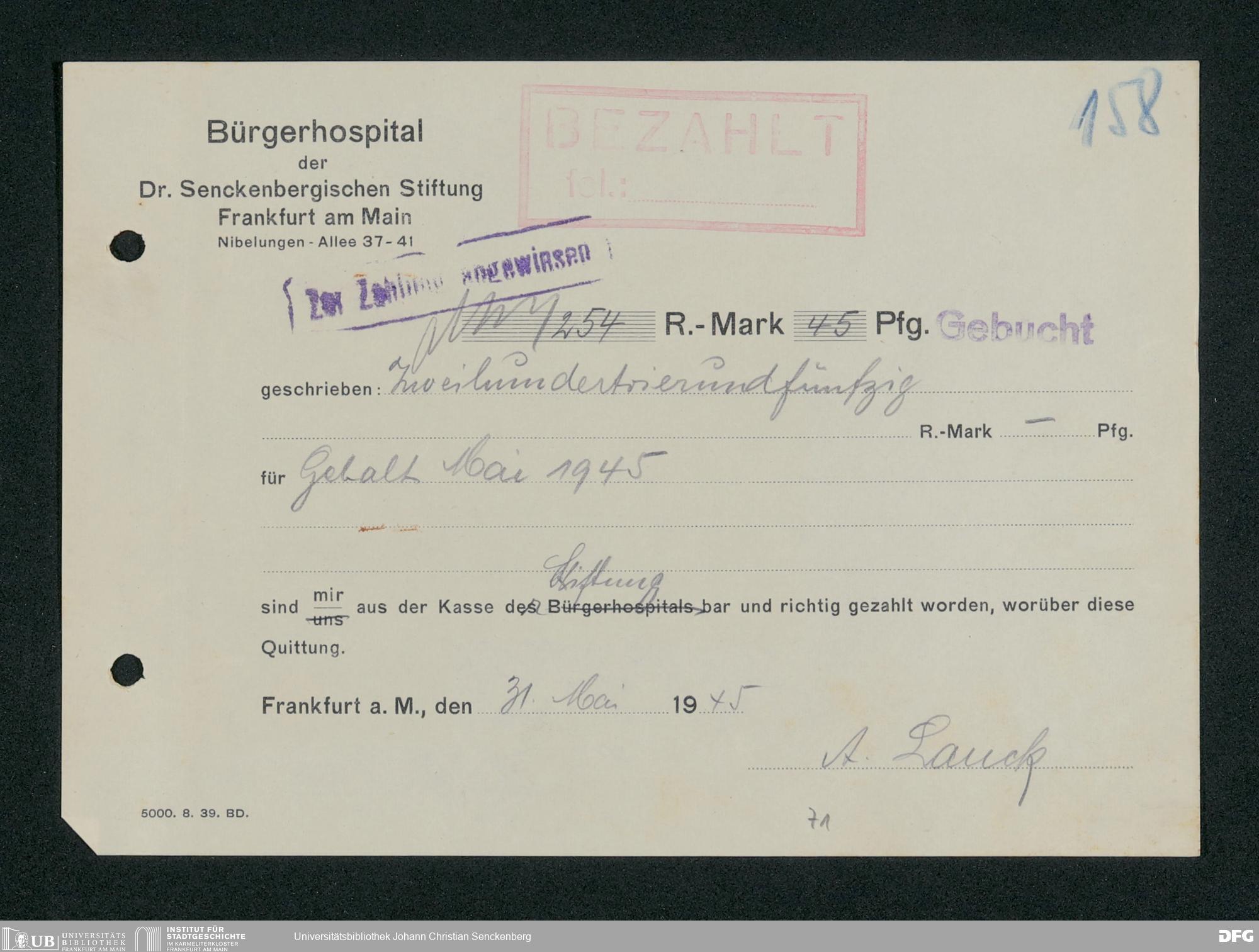 V48 Dr. Senckenbergische Stiftung, 659 - Kassenbelege