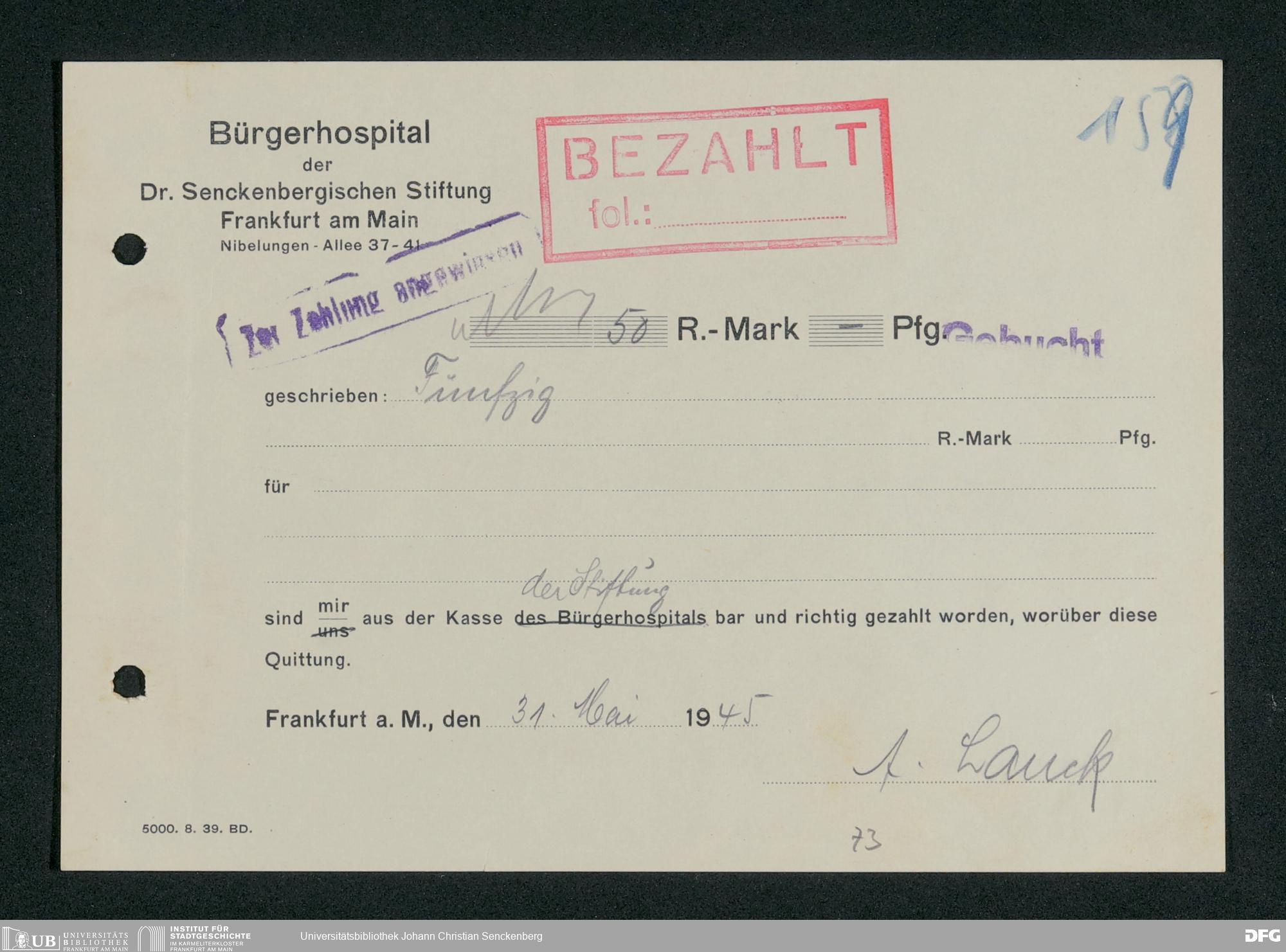 V48 Dr. Senckenbergische Stiftung, 659 - Kassenbelege