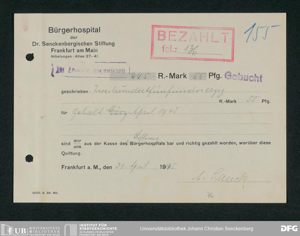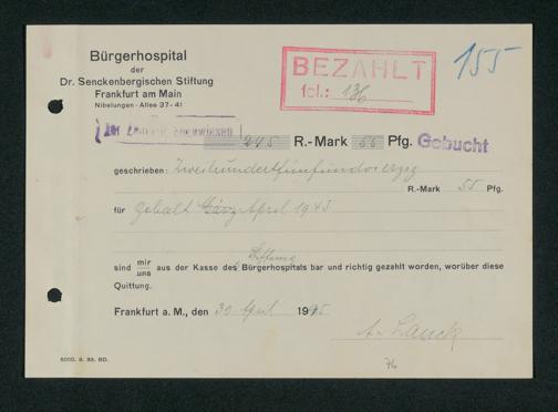 V48 Dr. Senckenbergische Stiftung, 659 - Kassenbelege