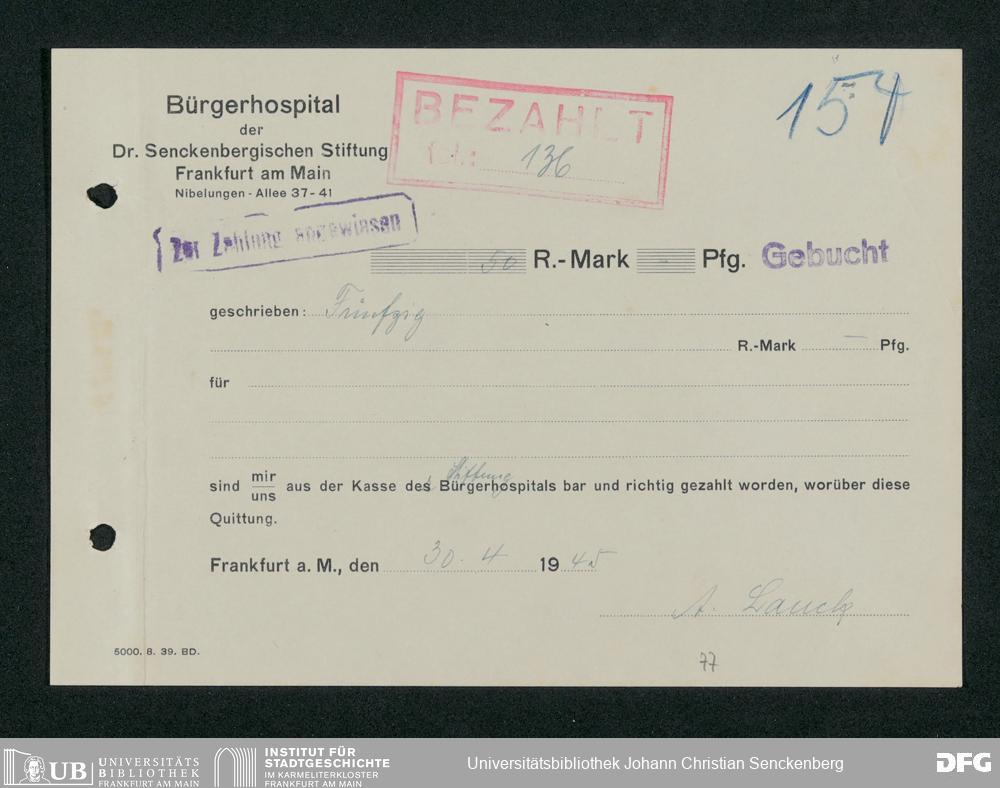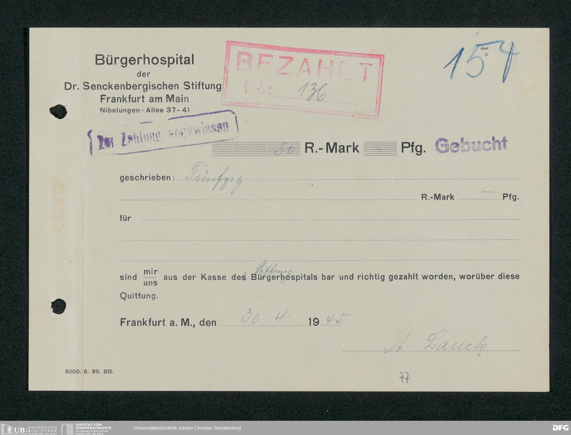 V48 Dr. Senckenbergische Stiftung, 659 - Kassenbelege