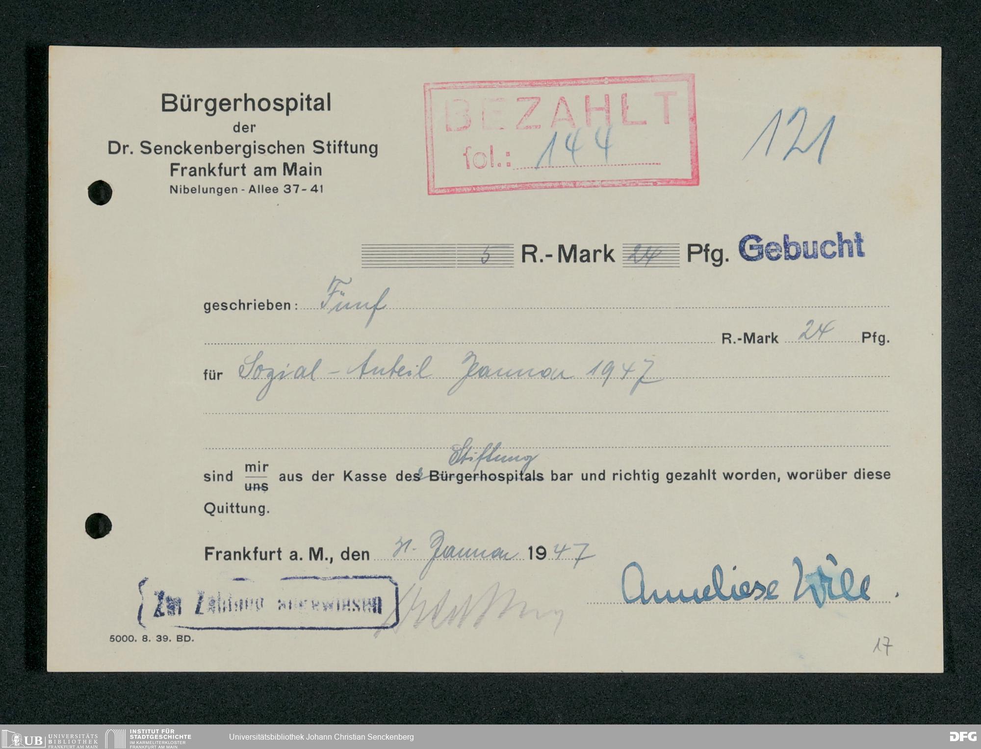 V48 Dr. Senckenbergische Stiftung, 660 - Rechnungen und Zahlungsbelege