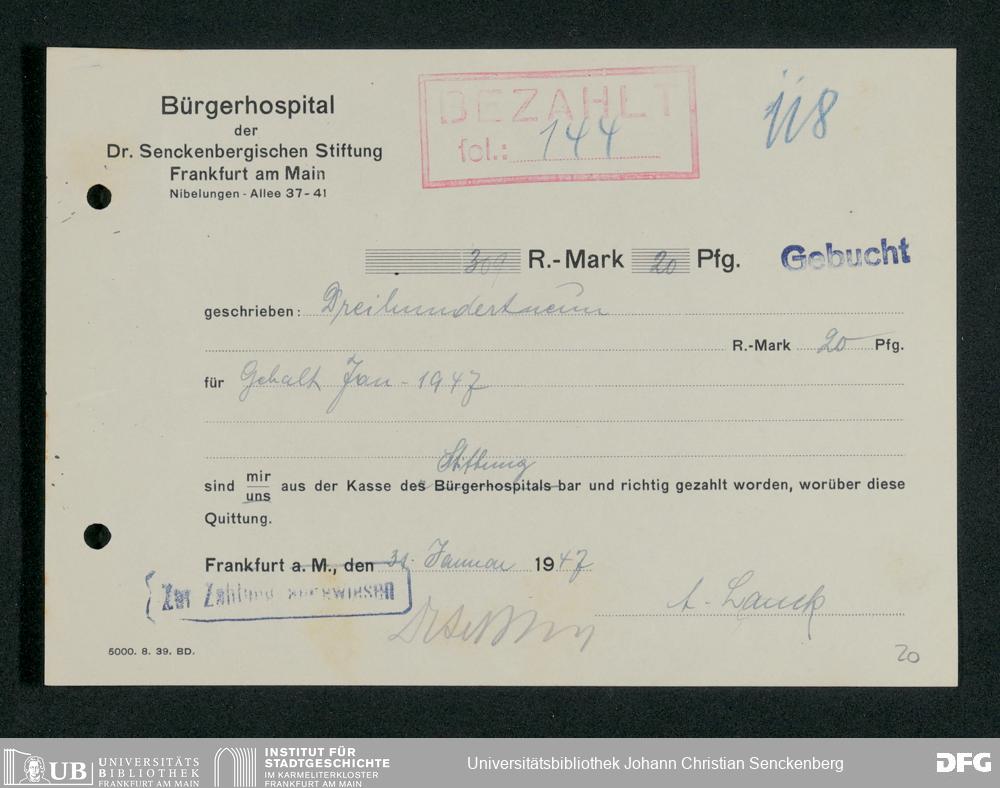 V48 Dr. Senckenbergische Stiftung, 660 - Rechnungen und Zahlungsbelege