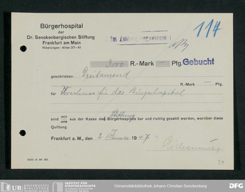 V48 Dr. Senckenbergische Stiftung, 660 - Rechnungen und Zahlungsbelege