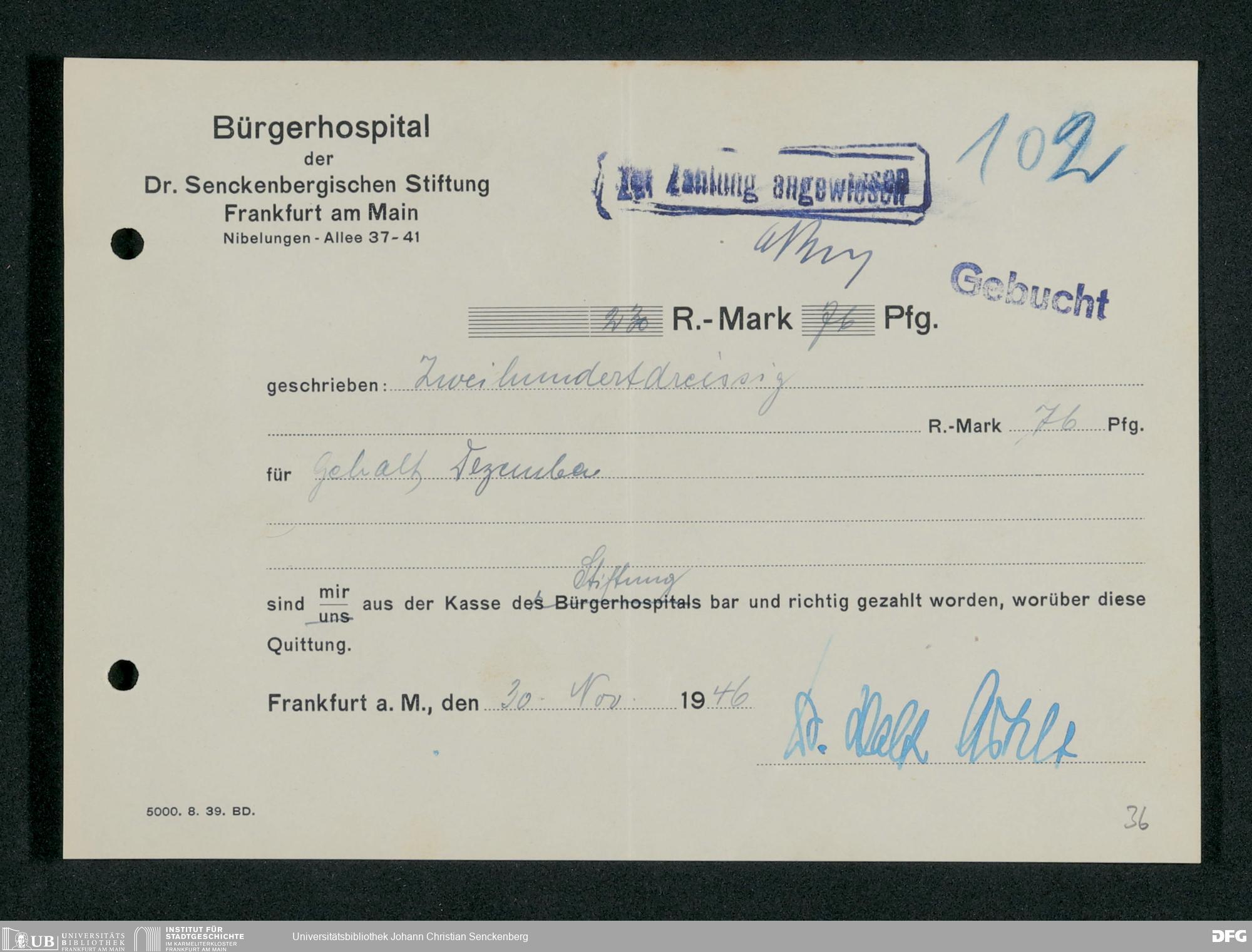 V48 Dr. Senckenbergische Stiftung, 660 - Rechnungen und Zahlungsbelege