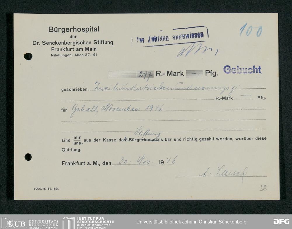 V48 Dr. Senckenbergische Stiftung, 660 - Rechnungen und Zahlungsbelege