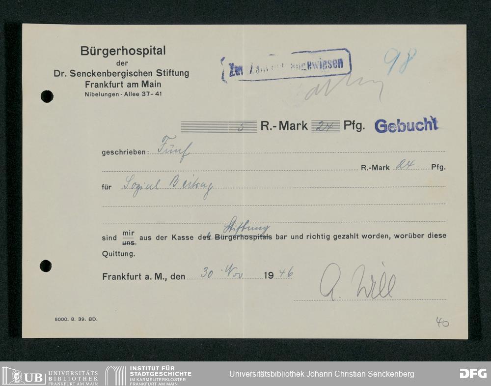V48 Dr. Senckenbergische Stiftung, 660 - Rechnungen und Zahlungsbelege