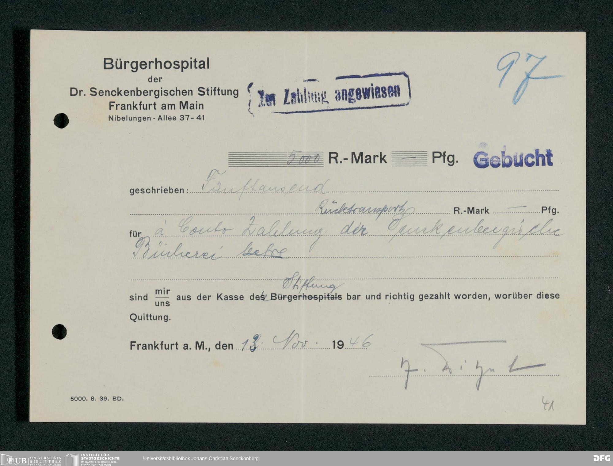 V48 Dr. Senckenbergische Stiftung, 660 - Rechnungen und Zahlungsbelege