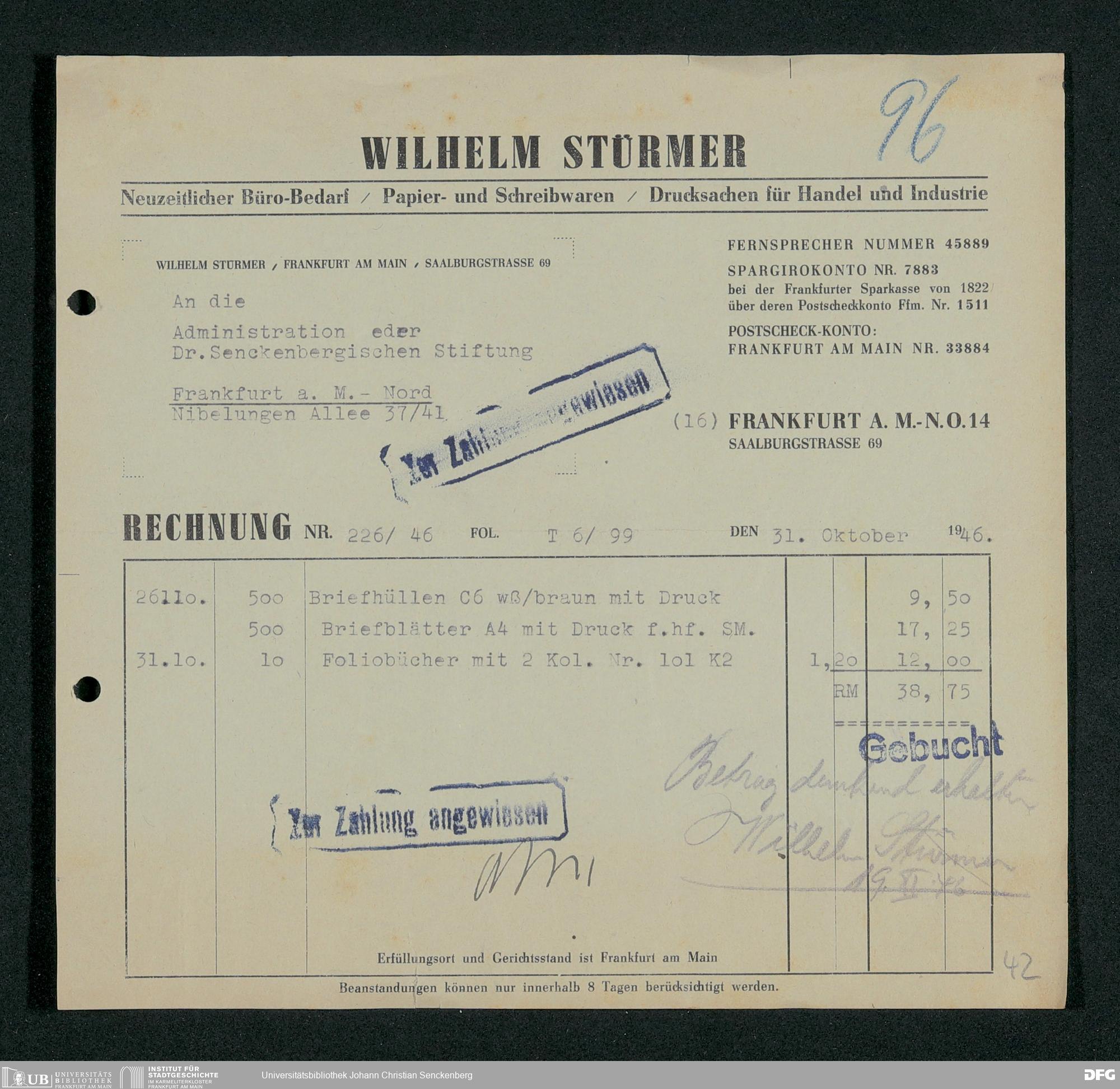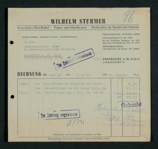 V48 Dr. Senckenbergische Stiftung, 660 - Rechnungen und Zahlungsbelege