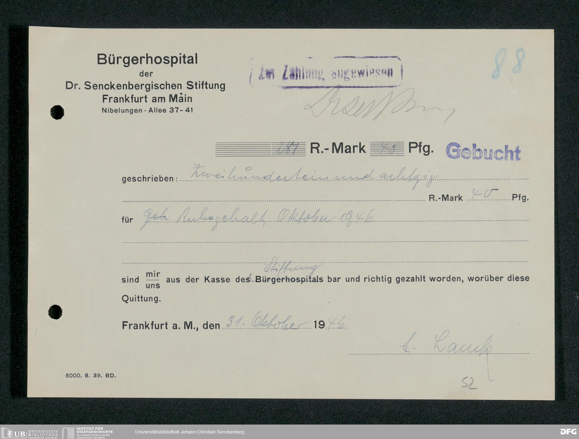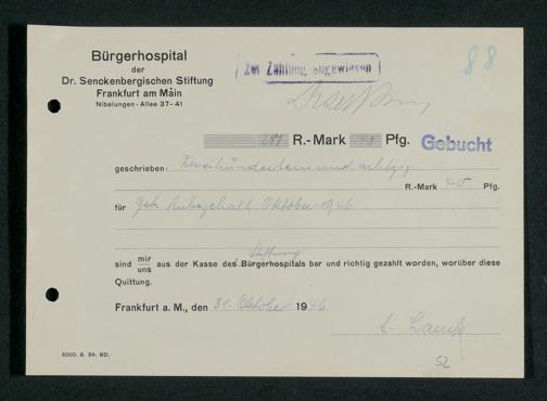 V48 Dr. Senckenbergische Stiftung, 660 - Rechnungen und Zahlungsbelege