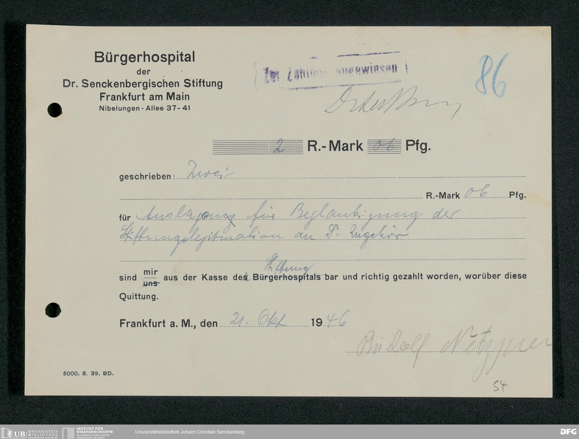 V48 Dr. Senckenbergische Stiftung, 660 - Rechnungen und Zahlungsbelege