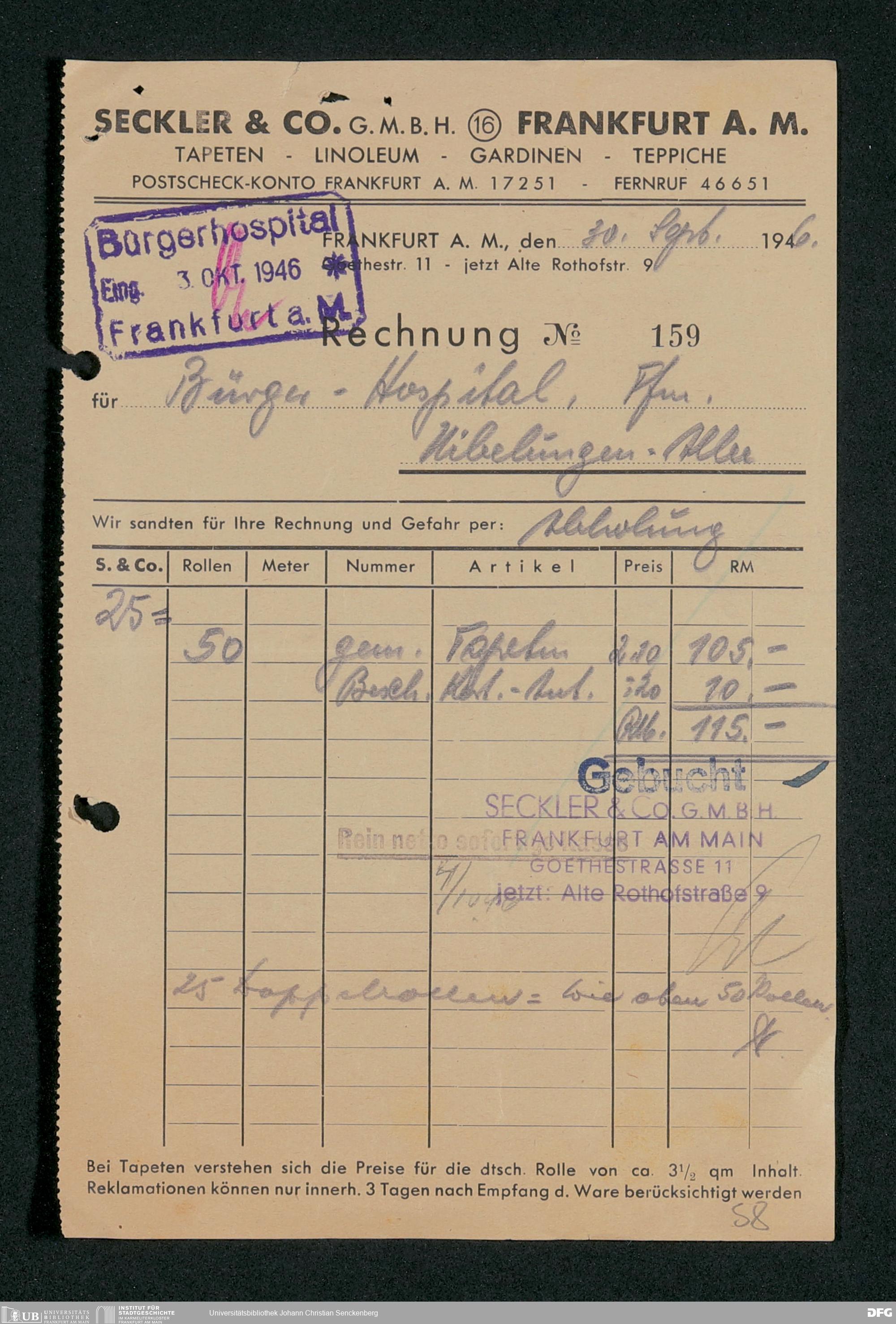 V48 Dr. Senckenbergische Stiftung, 660 - Rechnungen und Zahlungsbelege