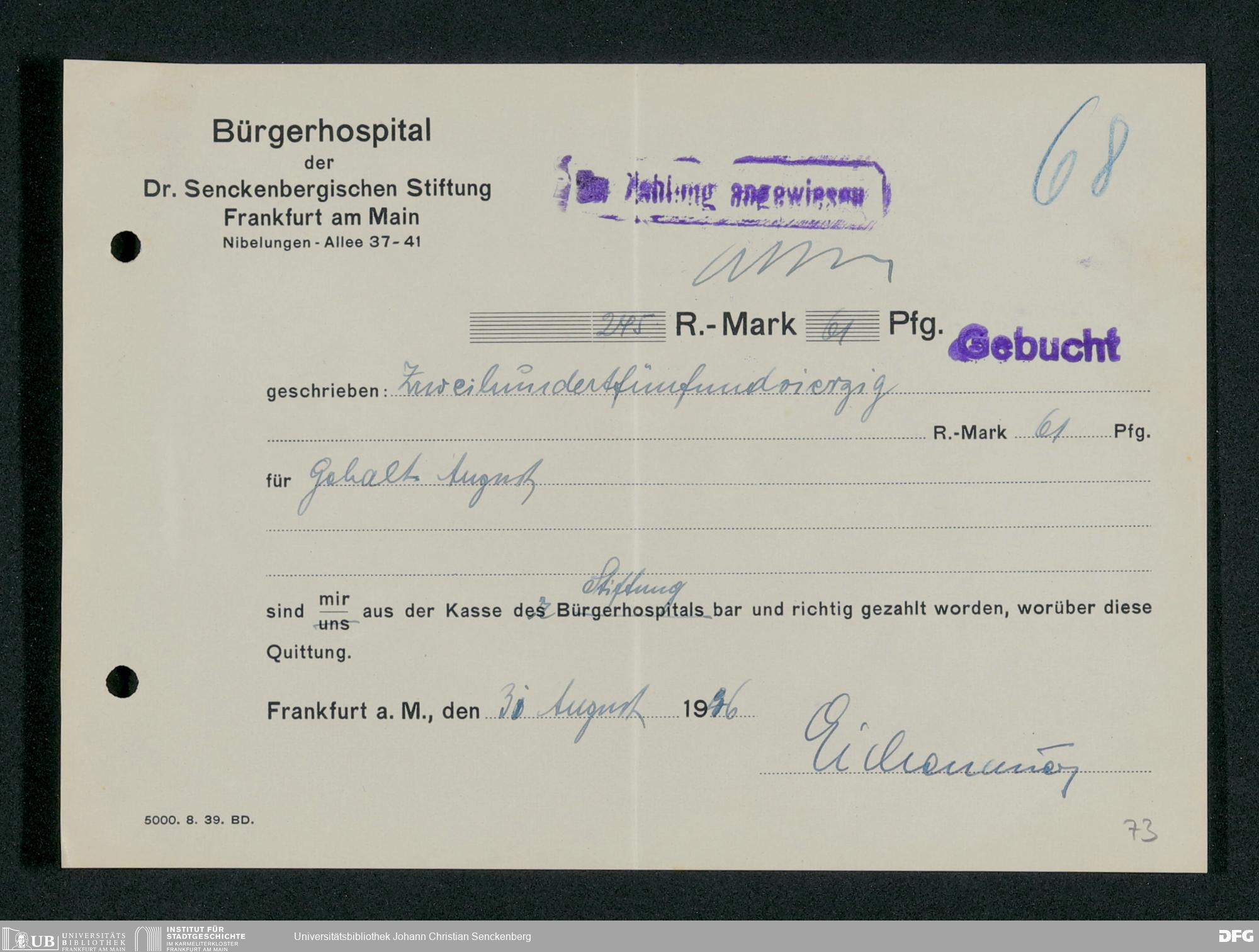 V48 Dr. Senckenbergische Stiftung, 660 - Rechnungen und Zahlungsbelege