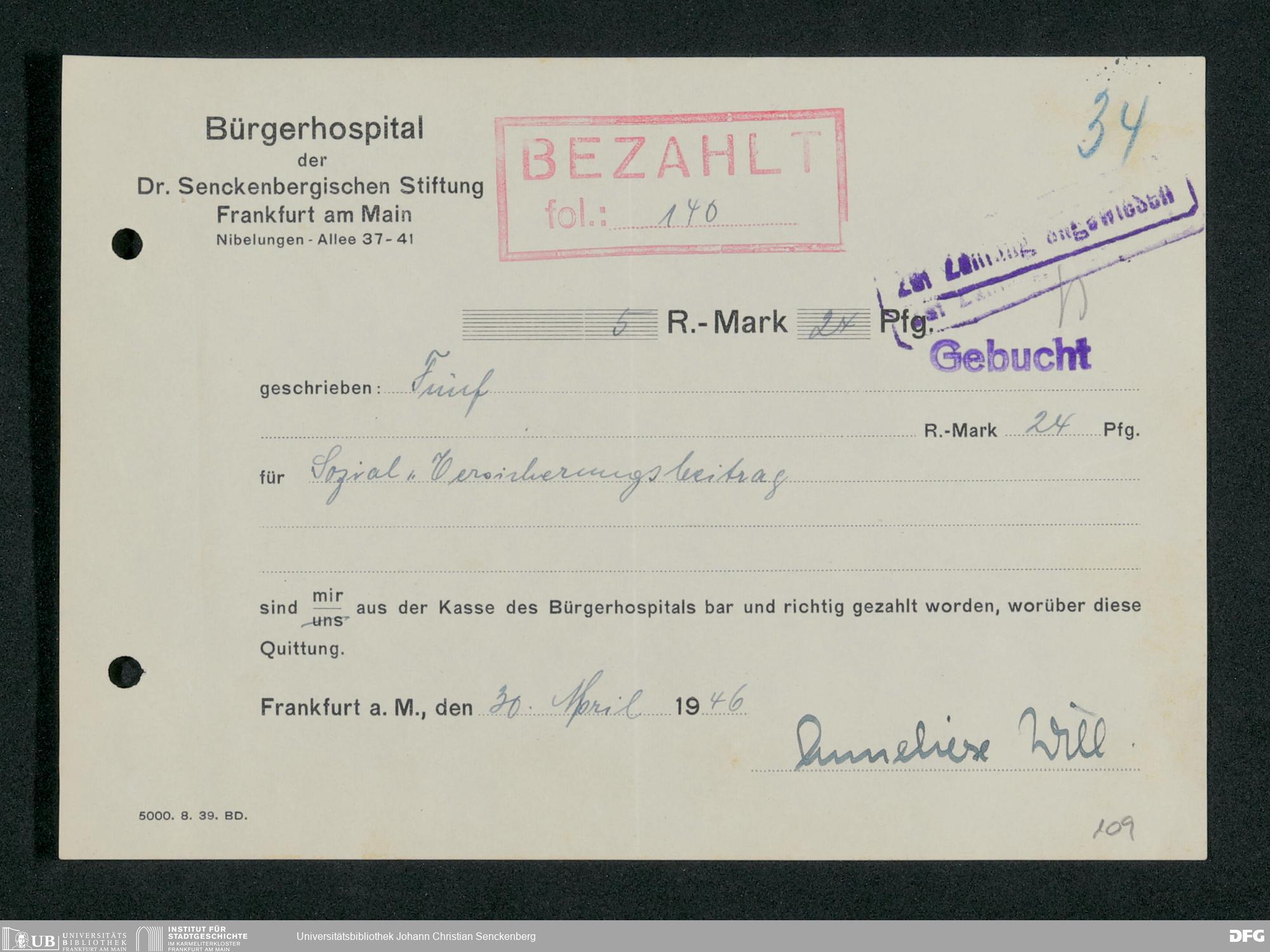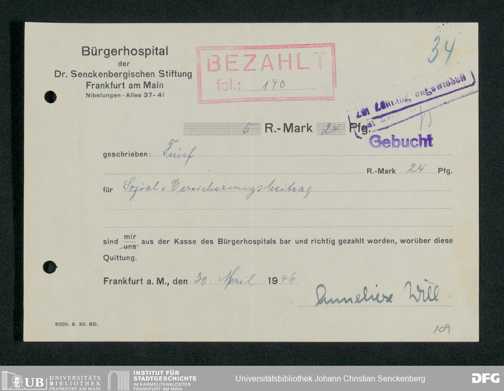V48 Dr. Senckenbergische Stiftung, 660 - Rechnungen und Zahlungsbelege