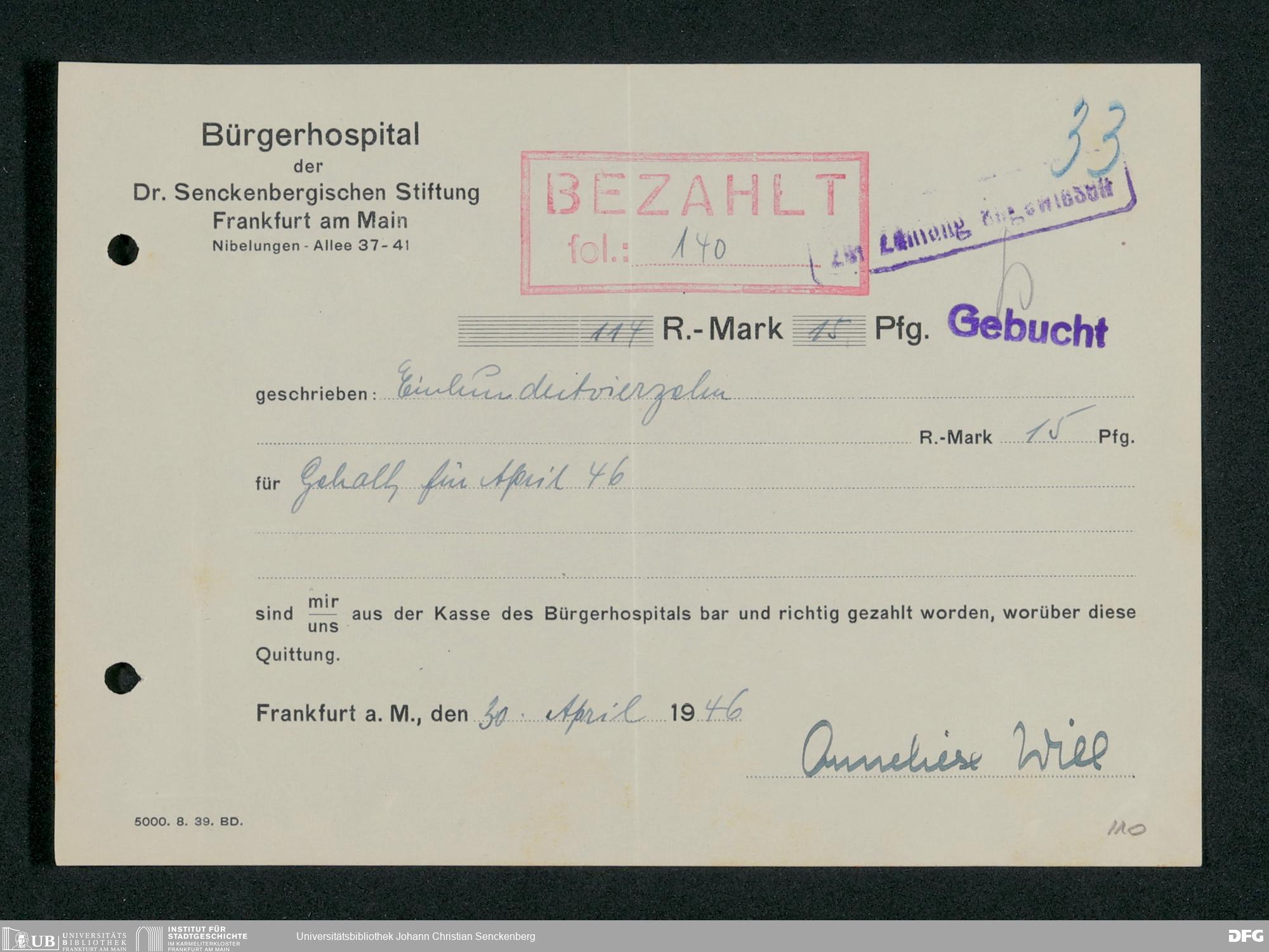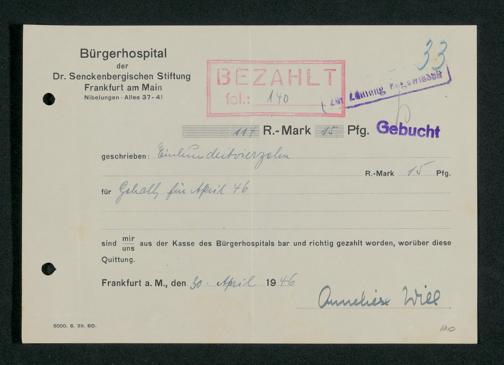 V48 Dr. Senckenbergische Stiftung, 660 - Rechnungen und Zahlungsbelege