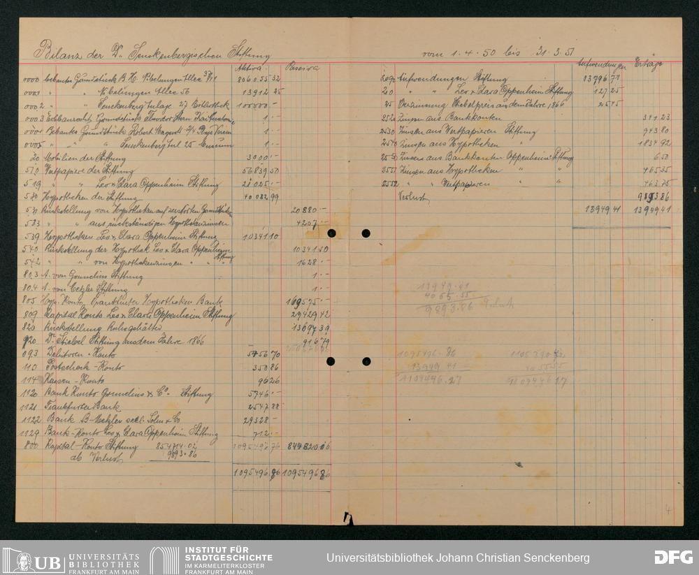 V48 Dr. Senckenbergische Stiftung, 664 - Bilanzen der Dr. Senckenbergischen Stiftung 1948-1952