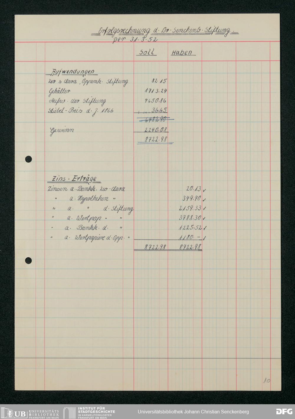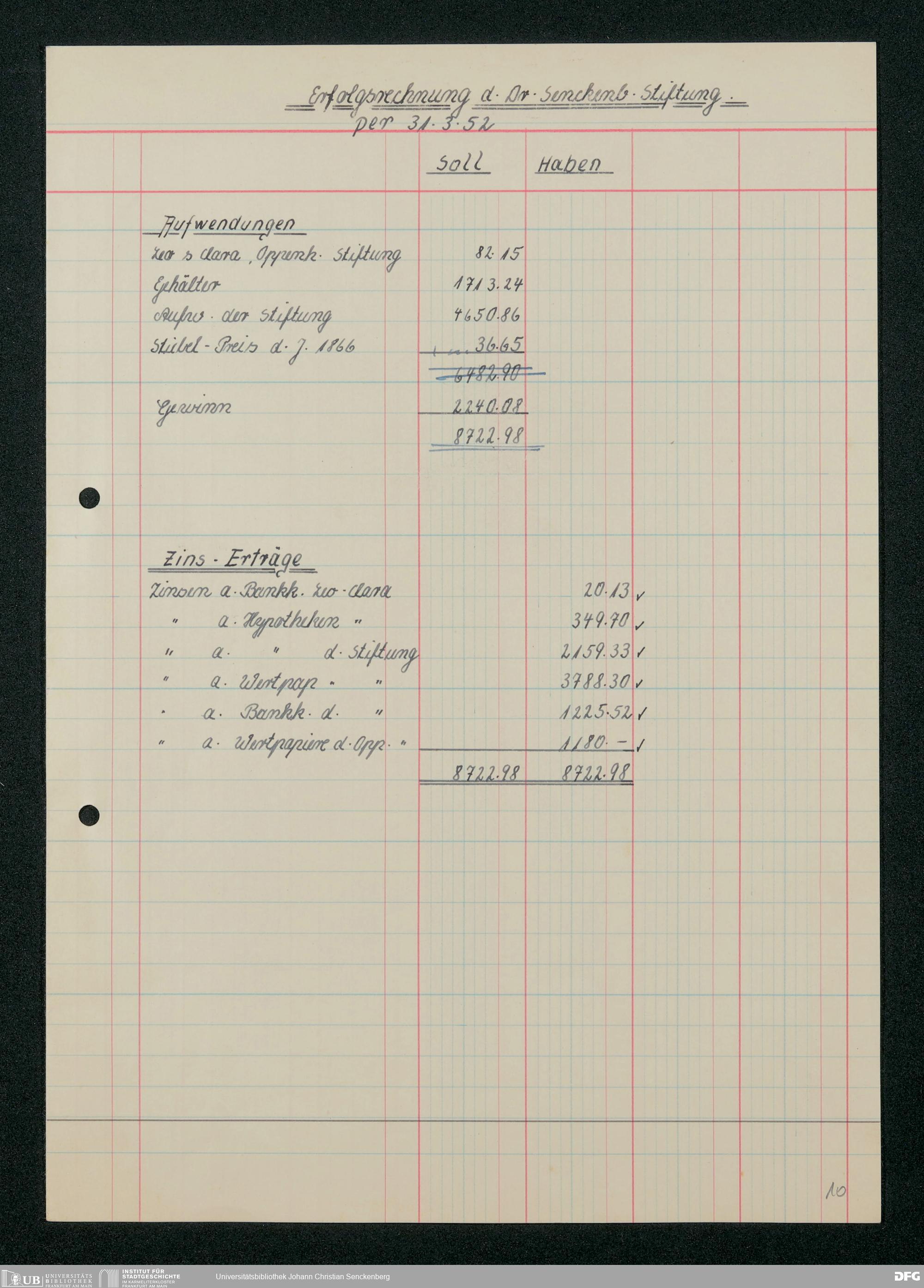 V48 Dr. Senckenbergische Stiftung, 664 - Bilanzen der Dr. Senckenbergischen Stiftung 1948-1952