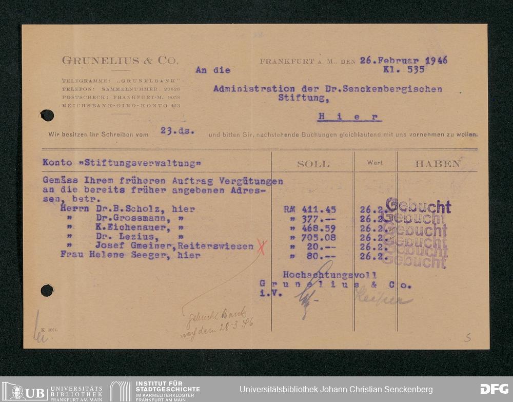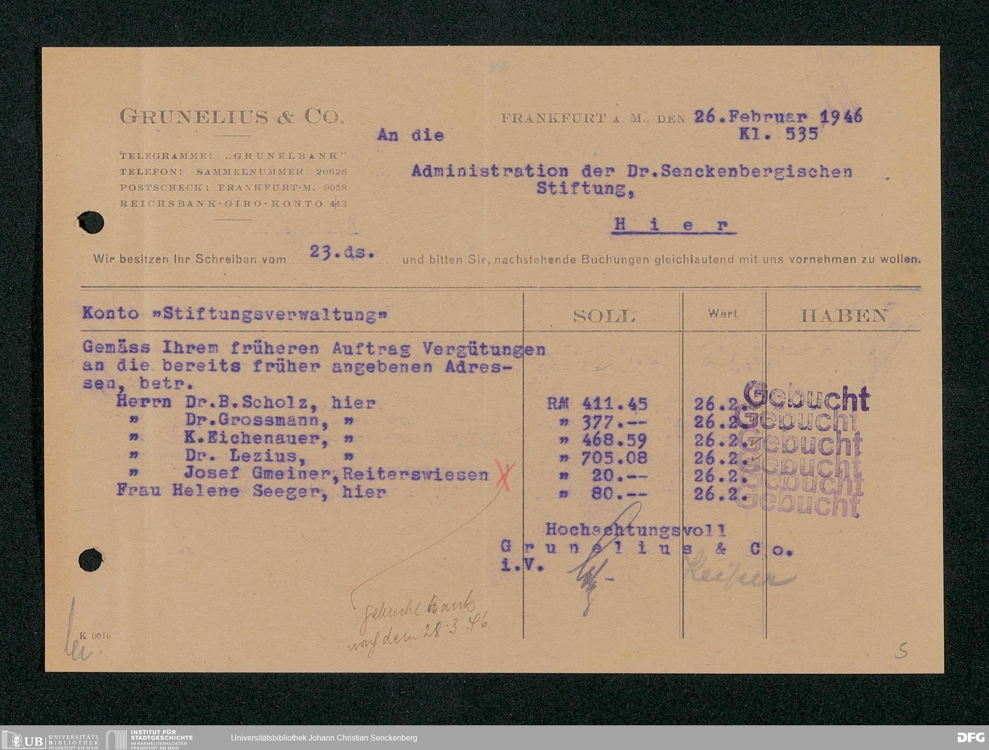 V48 Dr. Senckenbergische Stiftung, 667 - Bankhaus Grunelius & Co.