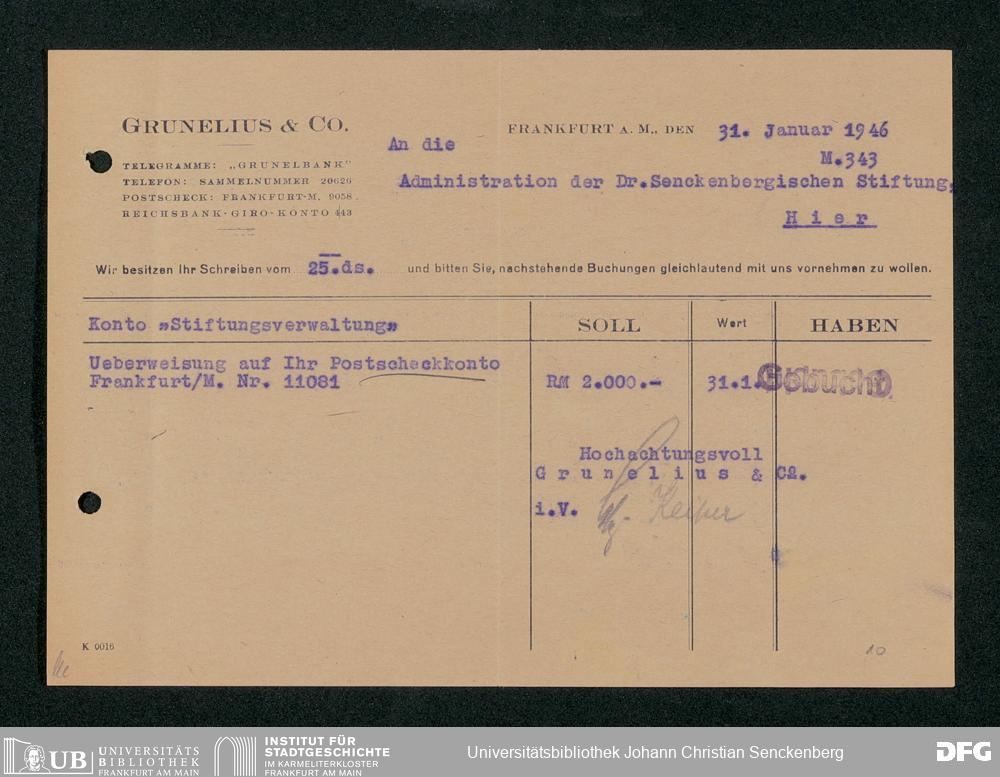 V48 Dr. Senckenbergische Stiftung, 667 - Bankhaus Grunelius & Co.