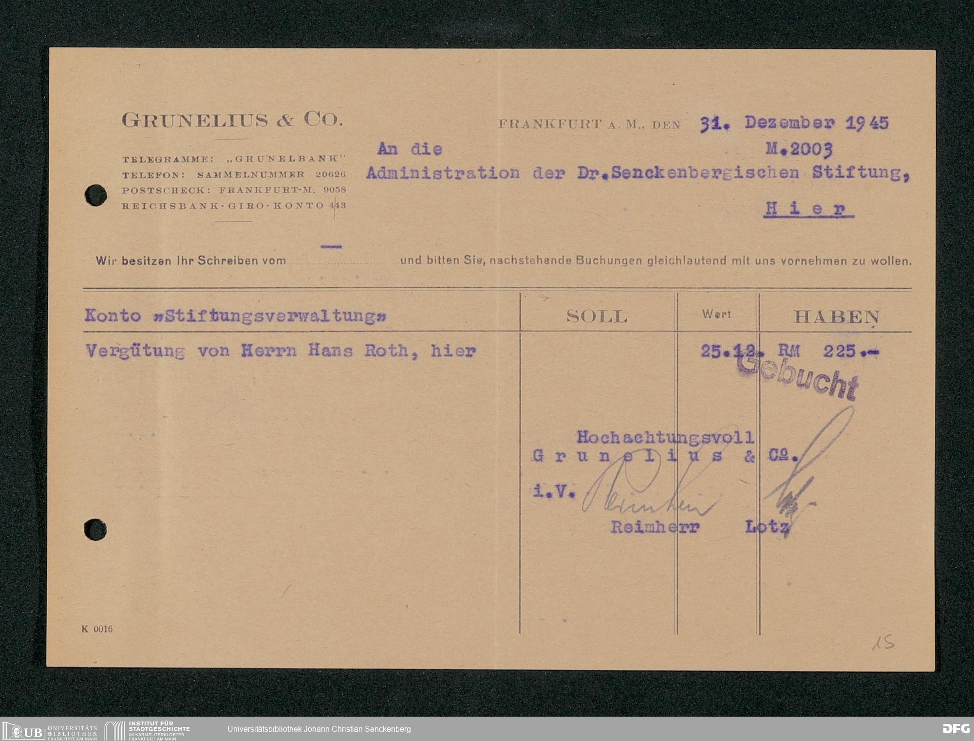 V48 Dr. Senckenbergische Stiftung, 667 - Bankhaus Grunelius & Co.