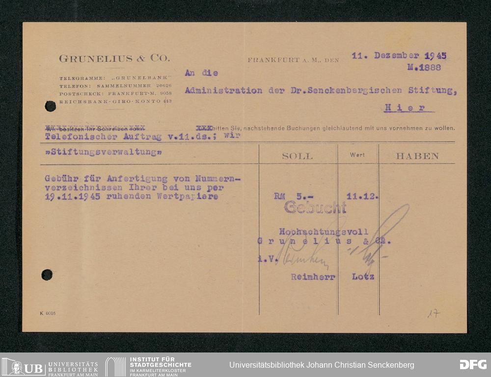 V48 Dr. Senckenbergische Stiftung, 667 - Bankhaus Grunelius & Co.